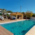 • This charming villa in Vélez-Málaga combines comfort, spaciousness and a design that integrates tradition and modernity. The property has three bedrooms and two bathrooms, and an open-plan design that seamlessly connects the living room, dining room and kitchen, creating a bright and welcoming atmosphere. The living room has a cozy fireplace with a wooden mantel, perfect for cooler nights, and large windows that flood the house with natural light and offer views of the surroundings. The modern kitchen is equipped with stylish cabinets, granite countertops and stainless steel appliances, including gas hob and extractor hood. The villa has an office space and a decoration that combines contemporary and traditional elements, with artistic details that add colour and personality to the rooms. Outside, the property stands out for its large plot full of various fruit trees, including exotic fruits, as well as a small greenhouse and a storage room. The house has a carport, private pool with underwater speakers and counter-current swimming system, chill out area and on the terrace a barbecue area, perfect for enjoying outdoor meals while contemplating spectacular views of the sea and the mountains. This villa represents a unique opportunity for those looking for a home with charm, comfort and ample amenities in the beautiful region of Malaga.   We are delighted to be able to present this property to you soon, either personally or via virtual viewing. Because this world is unique - like our Axarquía. In Andalusia. On the Costa del Sol. Here, on the sunny side of life...