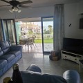 - Ground floor garden apartment. Located on Calle Sirius in Riviera (lower part). It has two bedrooms with two bathrooms, a separate kitchen divided from the living room by a rustic archway and bar. Living/dining room with air conditioning and direct access to a covered terrace with glass curtains, from which you can access the garden and communal swimming pool. Ceramic floors, barbecue on the terrace. The complex consists of 16 properties in 3 blocks, where this apartment is located in a block with only 4 properties. Water is included in the community fees. It is only 150 metres from Riviera beach, supermarkets, restaurants, bars, etc. It is a perfect property to enjoy the Costa del Sol without having to use the car. Do not miss the opportunity to see this property, which is just a stone's throw from everything