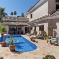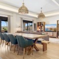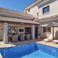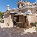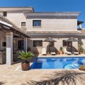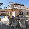 - Stunning Family Villa in Mijas Costa – Located in a Quiet Residential Area Highlights: – Terrace with sea views – Private swimming pool & pool bar – 5 bedrooms, 4 bathrooms, guest-toilet – Basement with games room, gym, wine cellar and XXL garage – Stylishly furnished – move-in ready This beautifully finished villa is in excellent condition and features multiple terraces. Layout: On the ground floor, the entrance hall welcomes you with elegant wooden doors and a guest toilet. The spacious 50 m² living room offers both a sitting area and dining area. A separate fully fitted kitchen with built-in NEFF appliances 2 x Fridge-freezer, Microwave, Oven, Dishwasher, Coffee machine, the kitchen opens onto a terrace. Also on this level are 3 bedrooms and 2 bathrooms. The villa is surrounded by terraces and landscaped gardens, with abundant greenery. The private pool is located on the main terrace, next to a perfect covered terrace directly connected to the living room. A fully equipped pool bar sets the ultimate summer mood. To the side, you will find a working jacuzzi, close to the BBQ area and outdoor kitchen, conveniently located near the main kitchen. The master bedroom is located on the first floor and features a spacious, well-finished walk-in closet. Its front-facing covered terrace is the ideal place to enjoy the sea views. A modern en-suite bathroom with luxury walk-in shower completes this suite. Also on this floor are 2 additional office/work rooms, which can easily serve alternative purposes. Another terrace is located to the rear/side. The villa benefits from a full basement. Here you will find a large games room, a fully equipped gym, and a cosy wine cellar. The 5th bedroom, perfect for guests, is also located here, along with a practical laundry room. Not to forget, an XXL garage with ample space for 4 cars plus scooters or other leisure equipment. A soundproofed music studio has also been created. Extras: Hot & cold air conditioning Wall-mounted heating panels for additional comfort, Bluetooth Ceiling fans UFH in bathrooms Jacuzzi Alarm & securiy cameras Tastefully decorated The villa is offered fully furnished, completely move-in ready, and equipped with every convenience. Location – La Sierrezuela La Sierrezuela is a residential area mainly consisting of detached villas. Within walking distance you’ll find a few restaurants and a small supermarket. Fuengirola is less than 2 km away and the beach just 3 km. Málaga Airport is reachable within 20 minutes by car. Details form title deed: Plot is 1.000m2 Total built for the villa 528m2 Built ground floor 178m2, First floor 56m2, Basement 286m2 Excl terrases.
