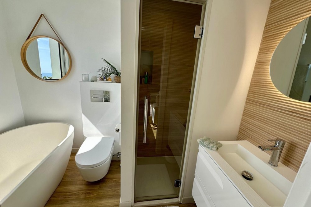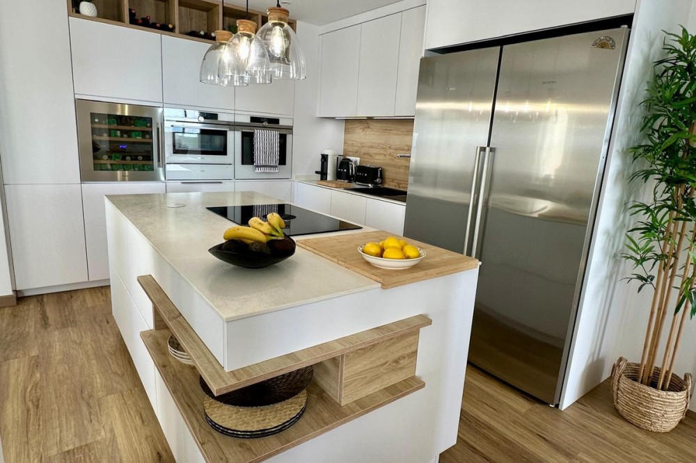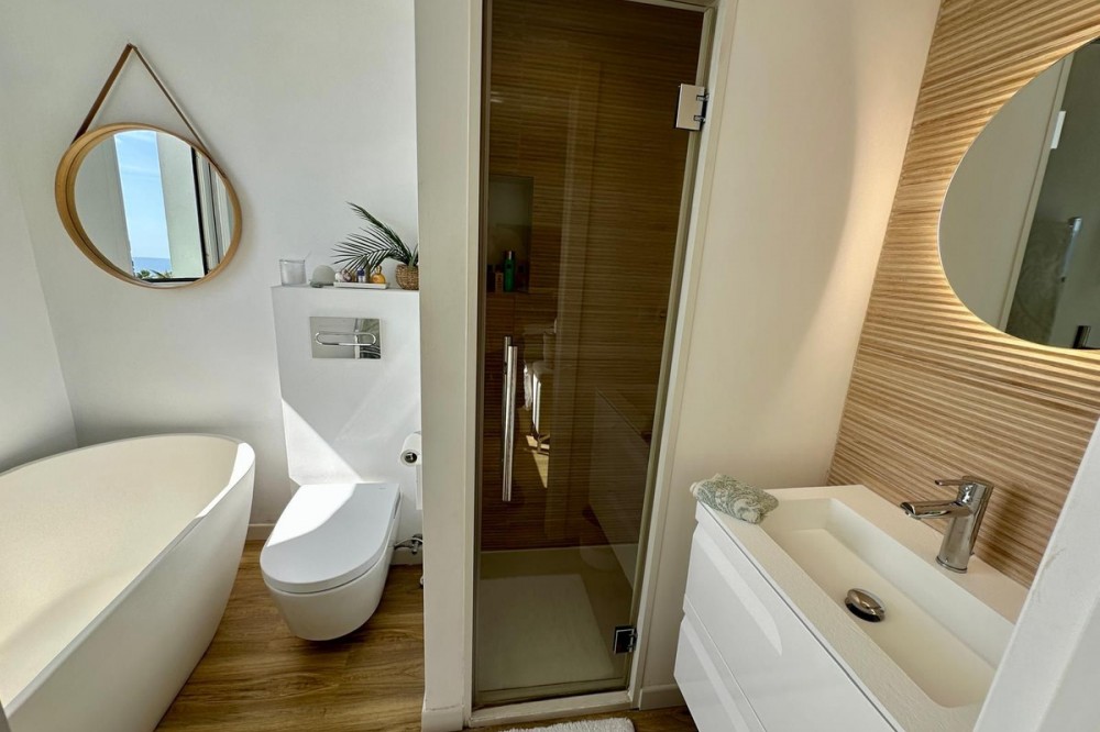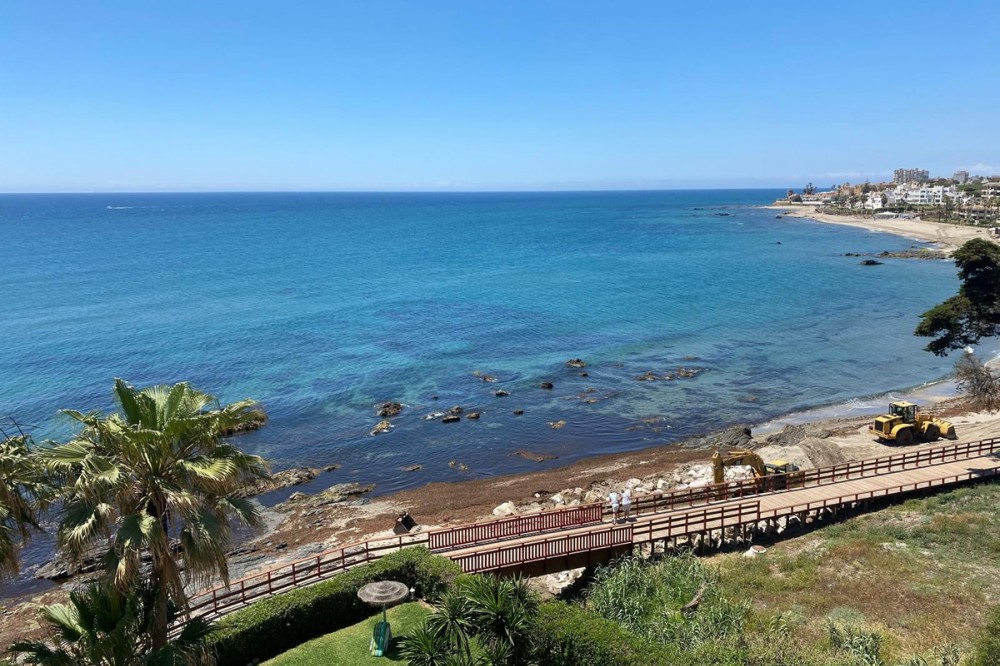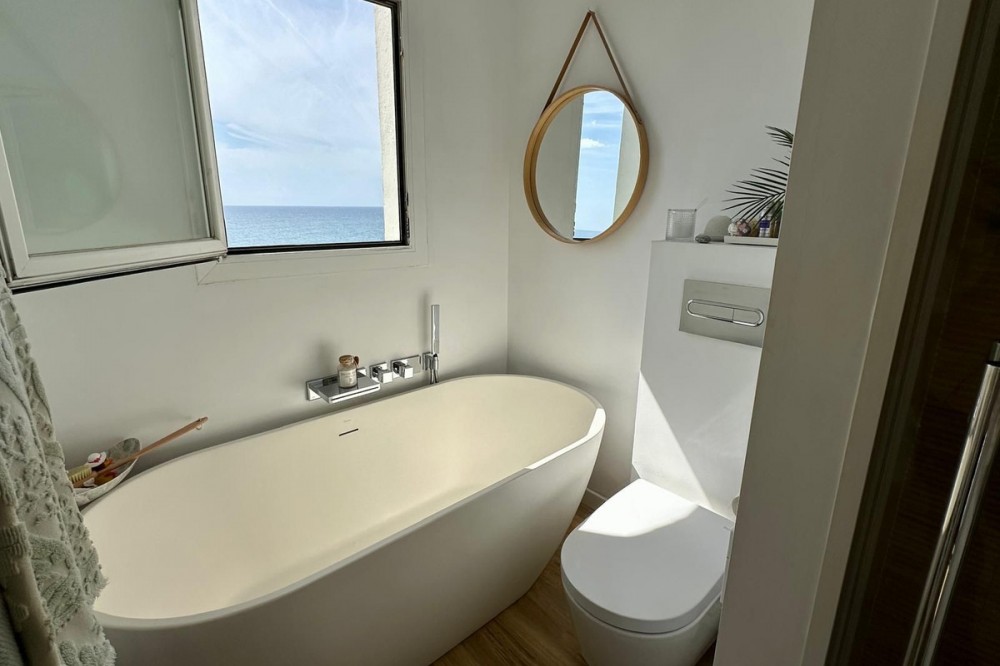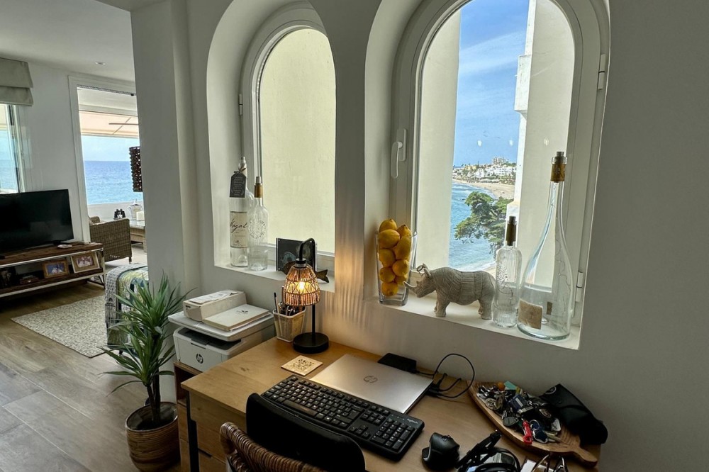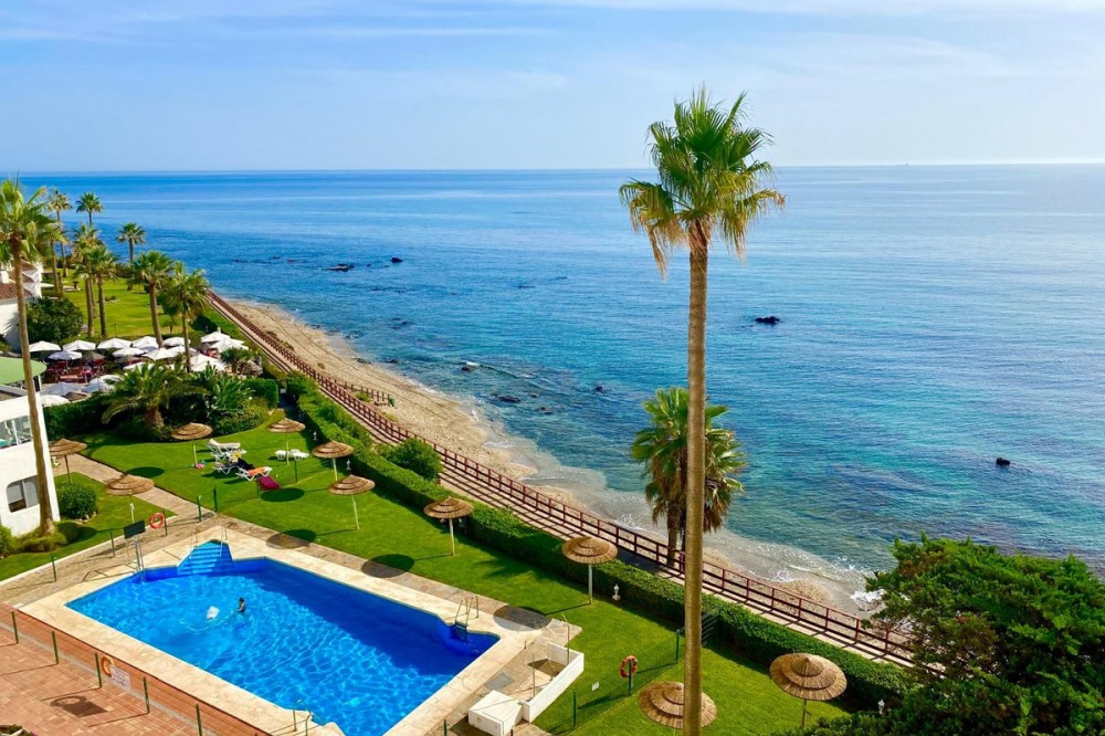 - FRONT LINE BEACH / ALOUD HOLIDAY RENTALS . Spectacular apartment on the beachfront between the Riviera del Sol and Miraflores developments in a residential area right on the coastal promenade and magnificent beach with a large garden area, a large swimming pool, and private communal parking. The apartment is unique, with two bedrooms and two bathrooms, completely renovated and refurbished, with a high-quality island kitchen, fully furnished, and a terrace that feels like you're on a balcony overlooking the sea. Additionally, with an extra, the community accepts holiday rentals, a magnificent plus to make this gem profitable.
