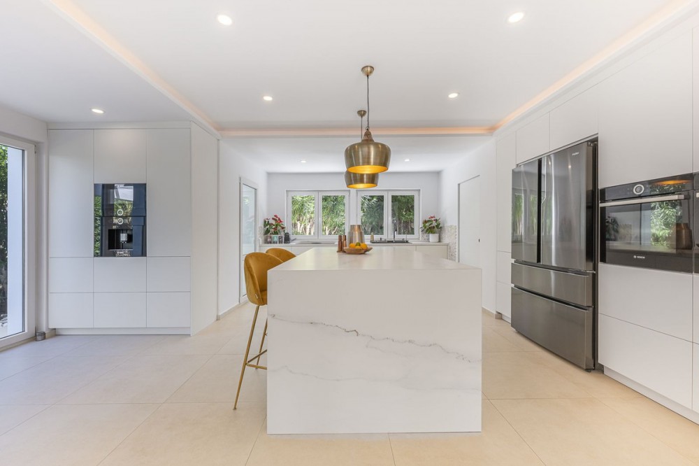 - Elegant Family Villa in Prime B Zone Location This stylishly renovated villa offers a perfect mix of modern comfort and generous space, situated in one of B Zone’s most desirable neighbourhoods. The property is arranged over two levels and features five ensuite bedrooms, including two beautifully appointed master suites. Every room has been designed with a focus on both comfort and contemporary style. The spacious, open-concept living, dining, and kitchen area is filled with natural light and opens onto large terraces on either side of the house, providing ideal spaces for relaxing or hosting guests. Finished to a high standard, the villa combines sleek modern touches with practical design, ensuring it works equally well as a family home or a peaceful retreat. Outside, landscaped gardens and a private pool create a haven of privacy and relaxation. Highlights • Five ensuite bedrooms, including two master suites • Light-filled open-plan living area • Expansive terraces on both sides of the villa • Swimming pool & private gardens • Air conditioning & central heating • Fireplace • Automatic irrigation system • Conveniently close to schools, golf courses, and polo fields