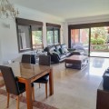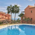 - In the Buenas Noches area, near Casares Playa and Estepona We present this spacious and very bright ground floor apartment. Upon entering, we find an entrance hall that leads to a separate kitchen with a laundry room and to a very open living-dining room thanks to a large window that connects to the generous terrace, with partial sea views, from which there is direct access to the communal pool. The living room also has two additional windows on the side, providing natural light throughout the day. The property has two double bedrooms: the master bedroom with en-suite bathroom, fitted wardrobe, and access to the terrace overlooking the pool; the second bedroom also has a fitted wardrobe. The exterior carpentry is aluminum, and the doors are lacquered in white. It includes a convenient parking space with room for a large car and motorcycle, as well as a storage room. The terrace has been glazed with the Lumon system, allowing it to be enjoyed all year round.