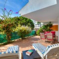 - Alamar – A Favourite in the Heart of La Cala de Mijas Here’s your chance to acquire this lovely ground floor apartment with 2 bedrooms and 2 bathrooms in the highly sought-after residential complex Alamar – just a stone's throw from the beach and the charming village of La Cala de Mijas. The apartment offers a total living area of approximately 90 m², thoughtfully designed for comfort and functionality. The fully equipped, separate kitchen includes a practical adjoining storage and laundry room. Just beyond the kitchen, you'll find a spacious living room with ample space for both a dining area and a lounge – a perfect spot to relax or entertain. From the living room, you step out onto a fantastic 30 m² terrace, perfectly south-facing, fully private, and with partial sea views. Both bedrooms offer direct access to the terrace, seamlessly blending indoor and outdoor living – ideal for enjoying the sunny lifestyle all year round. Alamar is a well-maintained, gated community with excellent security, including a 24 hours concierge duiring the whole year. Residents enjoy access to a large communal pool, beautifully landscaped gardens, and a private padel court – all just steps from your home. The location is unbeatable – only 150 metres to Lidl supermarket and around 500 metres to the heart of La Cala, with its beaches, shops, restaurants, cafés, and a golf course. Here, you live close to everything while still enjoying a peaceful and secure environment. The apartment is in excellent condition and is sold fully furnished. Air conditioning with both hot and cold settings is included.