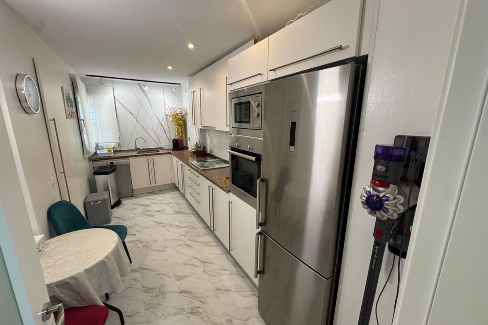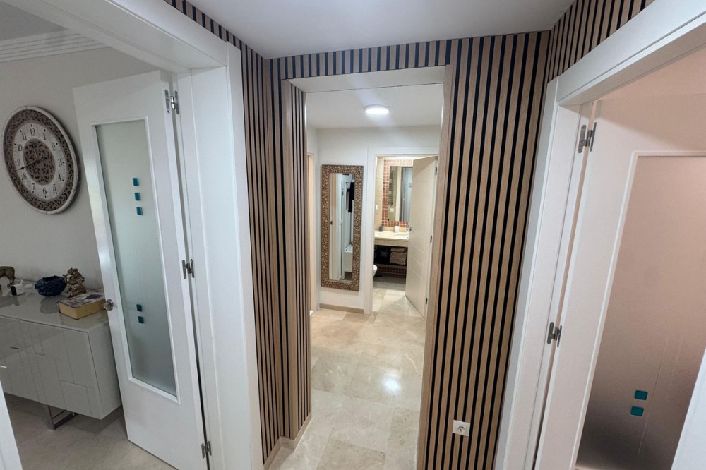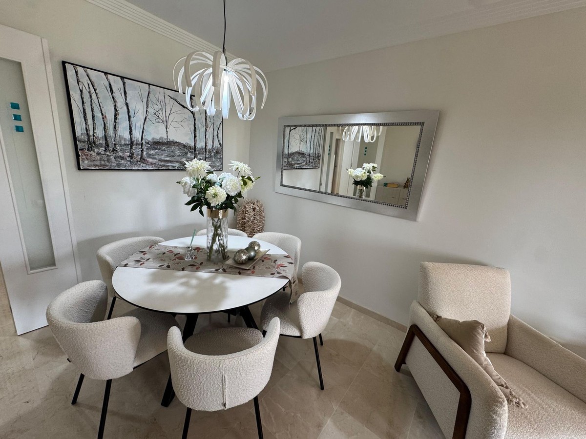 - This beautiful ground floor is located in a beautiful urbanization with beautifully maintained gardens, a large swimming pool and a children's pool. The flat is located on the first floor and has a spacious living room with a partially open kitchen. There are two spacious bedrooms and two modern bathrooms. The interior has a very modern look and the spacious terrace offers beautiful views of the gardens and swimming pool. The location is very central, between San Pedro and Estepona, making it ideal for both permanent living and holiday accommodation. The price includes a storage room and an underground parking garage. In addition, new furniture is included in the sales price.