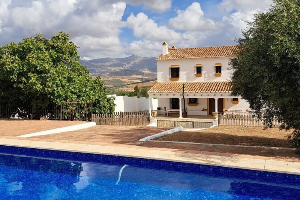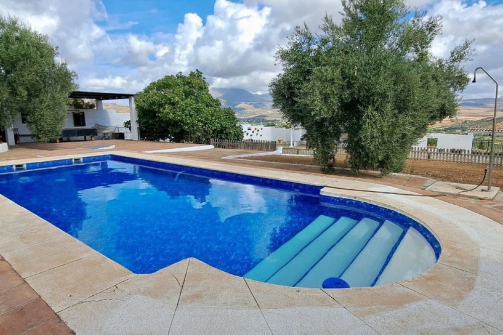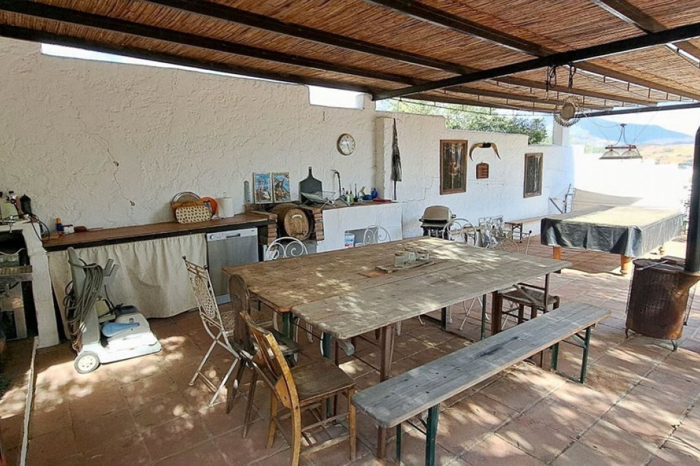 - Classic Hacienda in Alora: 4 Bedrooms 3 Bathrooms 263.00m² Build Size 40,000.00m² Plot Size We are offering this beautiful authentic hacienda, located on a productive olive grove of over 41,000 square metres, in Alora. The location of this characteristic cortijo is perfect. There are beautiful views, plenty of space and the charming Spanish village of Álora is within walking distance of this property! Álora has all the necessary amenities such as supermarkets, restaurants, schools, a medical centre and a train station with direct connections to the city of Málaga and the international airport! When we enter this estate through the large gate, we are immediately struck by the authentic and atmospheric enclosed courtyard. On the right-hand side is the stately house (180 m²) and on the other side is the swimming pool area with adjoining patio, studio, roof terrace and warehouse! Entering the country house through the double wooden doors, we arrive in an attractive and spacious hall. This hall has a guest toilet, a stately staircase to the first floor and access to the kitchen and living room. A special feature is the beautiful view through the house and the accompanying view outside from this hall! The kitchen is authentic and spacious and has all the necessary built-in appliances. A special feature is the authentic fireplace. The living room, measuring approximately 45m², is spacious, bright and features many beautiful details. The windows and double doors offer stunning views of the valley below, and there is a spacious outdoor terrace where you can enjoy the Spanish countryside. The living room also has wooden ceiling beams, beautiful flooring and a large fireplace. For convenience, a pellet stove has been installed for the cooler winter months. There are four spacious bedrooms on the first floor. The master bedroom is very spacious and has an en-suite bathroom and its own wood-burning stove. There is also a bedroom with an en-suite bathroom. The other two bedrooms share a modern bathroom in the hallway. The whole property has been created in one style and is very atmospheric! The swimming pool (renovated in 2024) is beautifully situated in the courtyard. Adjacent to this lovely spot is a spacious patio with a pool table, a gym with a roof terrace, a small studio with a beer brewery and a spacious warehouse. These areas have running water and electricity, and these outbuildings can be used for various purposes. The whole area is attractive and will be used extensively in the Mediterranean climate. Outside the fenced area of this spacious property is a wooden chalet. Currently used as a studio, but also suitable for various other purposes. The fenced plot of over 41,000 m² is planted with certified organic olive trees (Agricola). In total, there are approximately 450 olive trees, some of which are over 200 years old. The trees are currently maintained by local specialists. In addition to the connection to the water supply network, there is a productive well that can supply the house with water. There are deposits of 1 x 1000 and 1 x 5000 litres of water storage. Connection to the electricity grid and Wi-Fi available. This property is sold furnished!