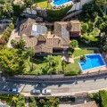 - Exclusive Villa in Torrequebrada – Benalmádena Costa Built area: 888 m² Plot: 2,109 m² Bedrooms: 6 Bathrooms: 6+ Private pool – Landscaped gardens – Total privacy Description Magnificent detached villa located in the prestigious Torrequebrada urbanisation, currently considered the premium residential area of Benalmádena. This property is truly unique thanks to its exceptional plot of over 2,100 m², twice the usual size in the area, offering spaciousness, privacy and exclusivity. The villa, with 888 m² built, is arranged over two levels (main and semi-basement), featuring generous and bright interiors, a classic design and luxury finishes. Main floor: large living room with garden views, dining room, independent kitchen with service access, office, master bedroom with en-suite bathroom and dressing room, three additional bedrooms, auxiliary areas, independent laundry room, and an interior patio with lush vegetation that brings natural light and freshness into the home. Semi-basement: two independent habitable areas, perfect for guest accommodation, recreational use or staff quarters. Includes a large garage and storage rooms. Outdoor areas 60 m² swimming pool facing south, enjoying sunshine all day long. Beautifully landscaped gardens with mature trees providing maximum privacy. Several entrances and various parking spaces. Location Situated next to Torrequebrada Golf Course and only 2 minutes from the beach, this villa benefits from a privileged setting with all amenities nearby: private schools, health centre, casino, leisure areas and excellent connections to the CN-340. Just 15 minutes from Málaga city centre and its international airport. Key features Exceptional plot, divisible according to the Municipal Urban Plan. Absolute privacy thanks to its elevated position. Versatile spaces for multiple uses (main residence, guest accommodation, staff quarters). Prime location in Torrequebrada, the most exclusive area of Benalmádena. For sale as-is, with furniture included.