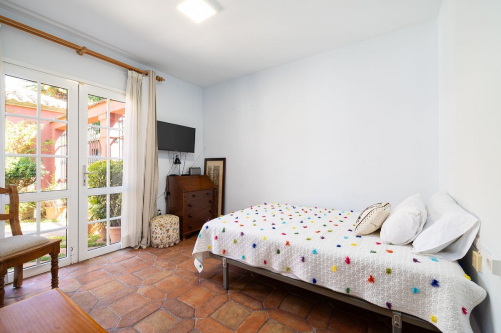 - Exclusive Villa in Torrequebrada – Benalmádena Costa Built area: 888 m² Plot: 2,109 m² Bedrooms: 6 Bathrooms: 6+ Private pool – Landscaped gardens – Total privacy Description Magnificent detached villa located in the prestigious Torrequebrada urbanisation, currently considered the premium residential area of Benalmádena. This property is truly unique thanks to its exceptional plot of over 2,100 m², twice the usual size in the area, offering spaciousness, privacy and exclusivity. The villa, with 888 m² built, is arranged over two levels (main and semi-basement), featuring generous and bright interiors, a classic design and luxury finishes. Main floor: large living room with garden views, dining room, independent kitchen with service access, office, master bedroom with en-suite bathroom and dressing room, three additional bedrooms, auxiliary areas, independent laundry room, and an interior patio with lush vegetation that brings natural light and freshness into the home. Semi-basement: two independent habitable areas, perfect for guest accommodation, recreational use or staff quarters. Includes a large garage and storage rooms. Outdoor areas 60 m² swimming pool facing south, enjoying sunshine all day long. Beautifully landscaped gardens with mature trees providing maximum privacy. Several entrances and various parking spaces. Location Situated next to Torrequebrada Golf Course and only 2 minutes from the beach, this villa benefits from a privileged setting with all amenities nearby: private schools, health centre, casino, leisure areas and excellent connections to the CN-340. Just 15 minutes from Málaga city centre and its international airport. Key features Exceptional plot, divisible according to the Municipal Urban Plan. Absolute privacy thanks to its elevated position. Versatile spaces for multiple uses (main residence, guest accommodation, staff quarters). Prime location in Torrequebrada, the most exclusive area of Benalmádena. For sale as-is, with furniture included.