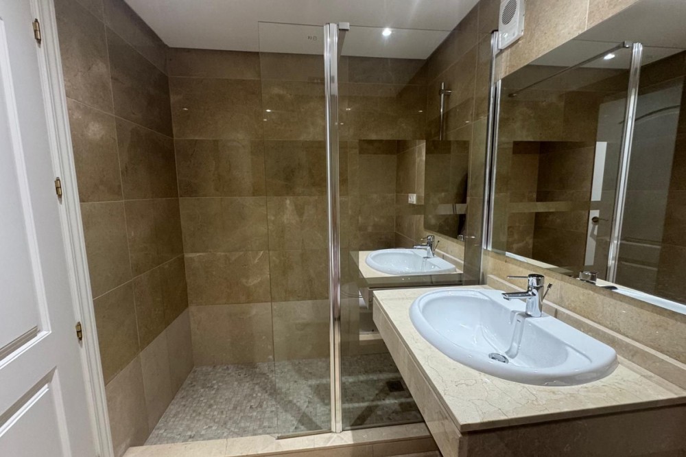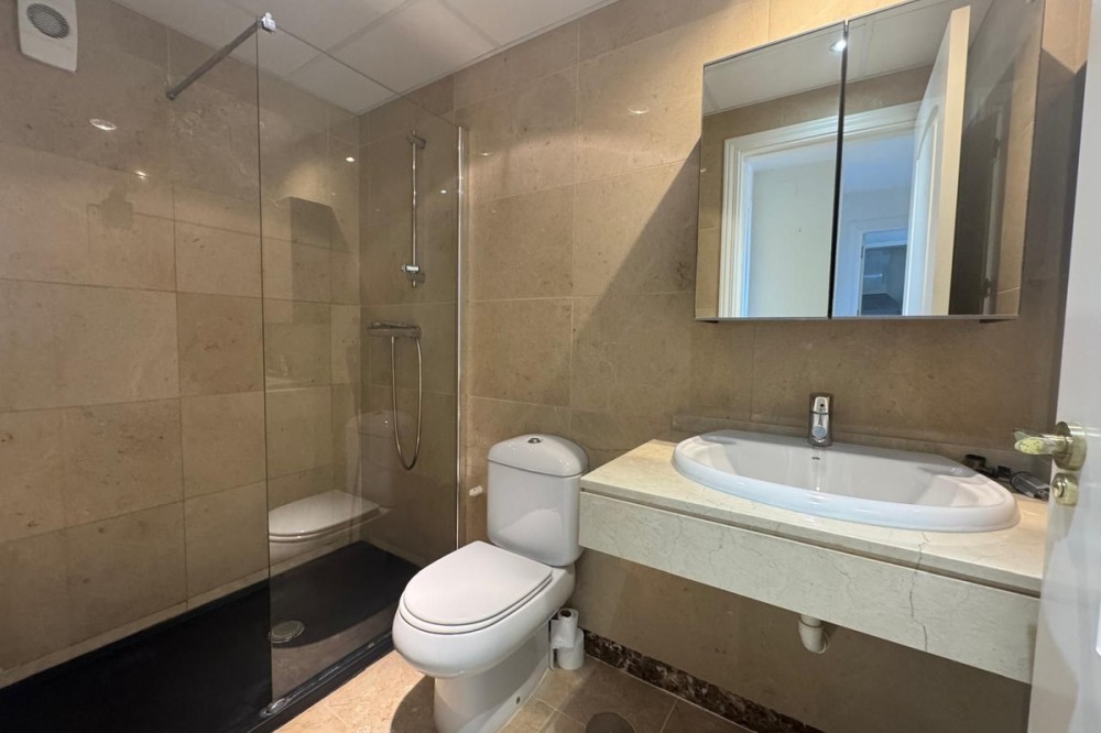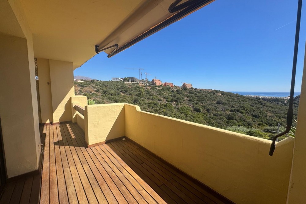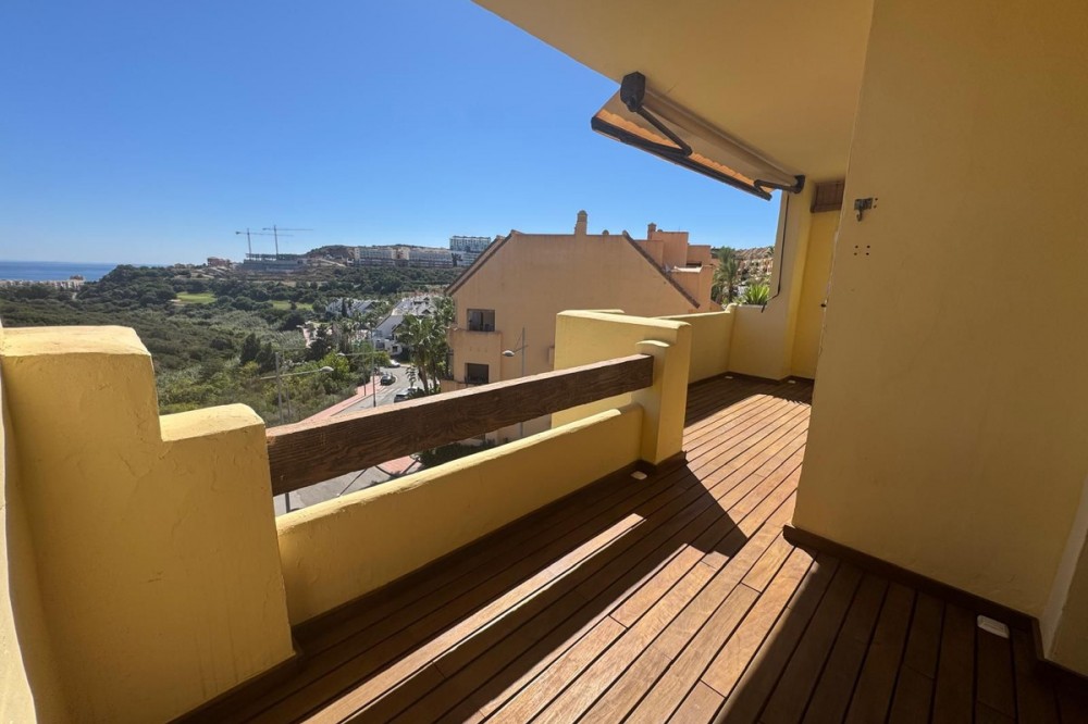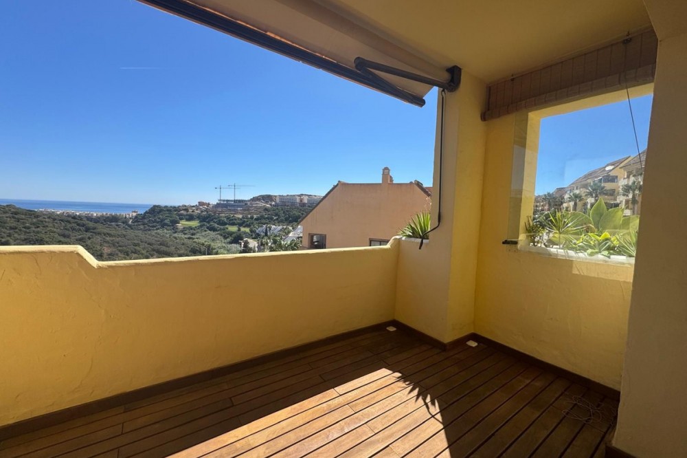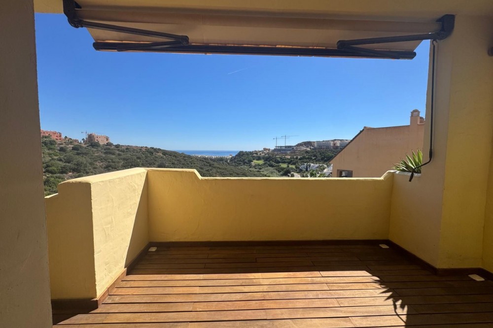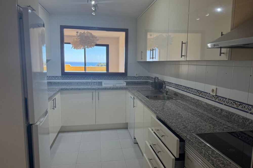 - Nice and pleasant flat with sea views, 2 bedrooms and 2 bathrooms of which 1 en suite. The bathrooms have been refurbished and both have large showers. The master bedroom has access to the terrace with beautiful sea views which communicates with the living room. The terrace has a raised wooden floor that allows you to continue enjoying the views while having a nice dinner. The living-dining room is bright and pleasant and the kitchen is spacious with a serving hatch, which allows you to see the sea while cooking, nothing more pleasant. This beautiful two bedroom flat is located in the prestigious community of Duquesa Village, a 4 minute drive to the beaches, bars and the marina of La Duquesa. The community has 5 swimming pools and paddle tennis court. In addition, the urbanization is very secure as it is gated with 24/7 security. The flat also has an underground parking space and a good storage room included in the price. Must be seen.
