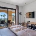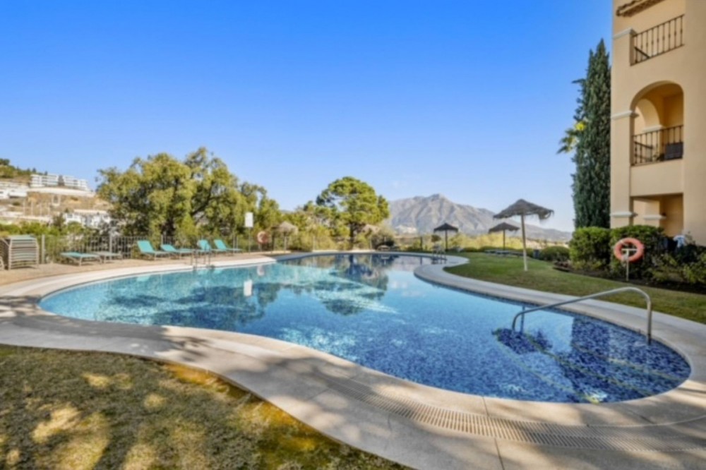 - Unique Investment Opportunity in La Quinta with Panoramic Views IMPORTANT NOTE: the apartment currently does not have a kitchen. The original kitchen has been removed, offering the opportunity to redesign the space—either by reinstalling a kitchen or transforming it into a third bedroom. Please note: The photos illustrate the potential design and layout possibilities within the apartment and show what can be created with renovation. The apartment is located in the most exclusive area of La Quinta Golf & Country Club. Buenavista de La Quinta offers the perfect choice for those who value privacy, comfort, and generous indoor and outdoor living spaces. Built and finished to the highest standards, this residence ranks among the most luxurious apartments in La Quinta – Benahavis. The spacious and bright apartment features a living and dining area with a cosy fireplace and direct access to a large southwest-facing terrace of 48 m², where you can enjoy stunning panoramic views and beautiful sunsets. The new owner has several options: the kitchen can be reinstalled in its original location, returning the apartment to a two-bedroom layout, or it can be integrated into the living area as an open-plan kitchen, allowing the property to be configured as a three-bedroom apartment. The master bedroom has direct access to the terrace and features an en-suite bathroom with a jacuzzi. The guest bedroom also has a bathroom with a shower. The apartment is equipped with an intelligent home system and includes underground parking and a storage room.