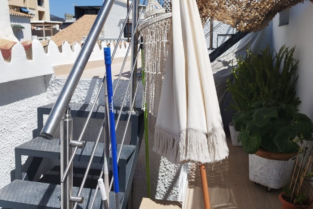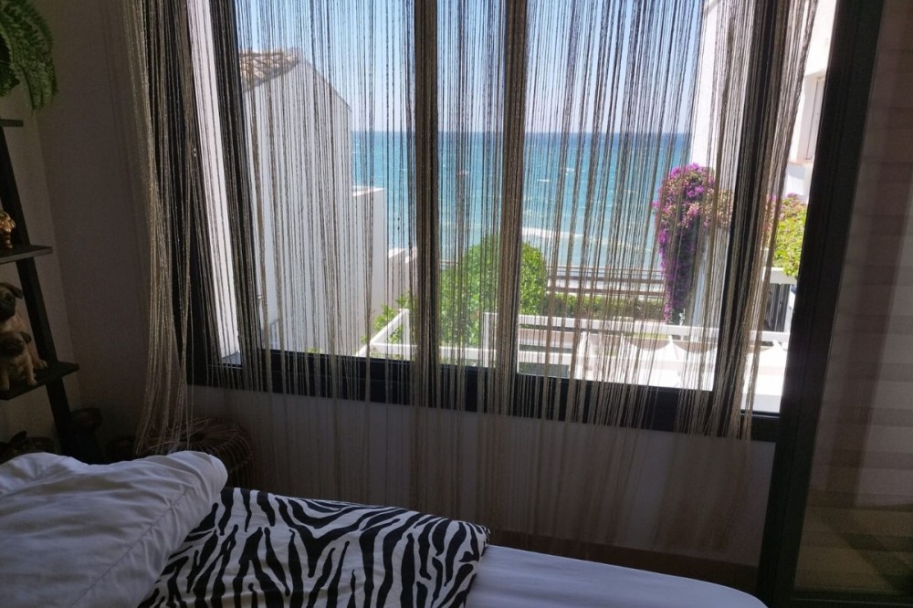 - Unique Sea-View Townhouse Just 20 Meters from the Beach in Estepona's Urbanización Pirata – South-Facing Gem! Seize this one-of-a-kind opportunity on the Costa del Sol: a charming semi-detached townhouse in Estepona's peaceful Urbanización Pirata, boasting 3 bedrooms, 3 full bathrooms, and 1 additional toilet, all just 20 meters from the sandy shores with spectacular unobstructed sea views. Spread across two floors, this spacious and light-filled home is perfect for year-round enjoyment, blending coastal charm with modern comforts in a tranquil community without a pool or high maintenance fees. Key Features: Spacious Layout: 3 comfortable bedrooms with built-in wardrobes, 3 full bathrooms, and 1 convenient toilet for family-friendly living. Outdoor Bliss: Sunny terrace and balcony offering breathtaking sea views, plus a private garden ideal for relaxation or al fresco dining. Bright Interiors: South-facing orientation ensuring abundant natural light; luminous living room with direct terrace access, and a fully equipped kitchen for effortless meals. Modern Essentials: Air conditioning throughout for year-round comfort, making it ready to move in. Community Perks: Quiet, low-cost urbanization with no pool, emphasizing serenity and affordability. Prime Location: Only a 1-minute walk to the beach, chiringuitos (beach bars), and the vibrant promenade – immerse yourself in Estepona's coastal lifestyle with ease. This versatile property is ideal as a primary residence, second home, or high-potential holiday rental investment. Don't miss out – contact us today to arrange a viewing!