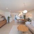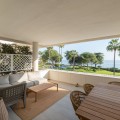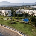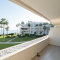- Luxurious Apartment with Stunning Sea Views in New Golden Mile A spacious, bright, and fully renovated ground-floor apartment with a modern design and stunning direct views of the sea and the complex. This property features 2 bedrooms, 2 bathrooms, and a terrace, perfect for enjoying the breathtaking scenery. Located in the prestigious New Golden Mile, just steps away from some of the best and most beautiful beaches on the coast, this area is known for its natural beauty, convenience, and high standard of living. The interior is designed in a modern Scandinavian style with soft beige tones, creating a cozy and comfortable atmosphere. Large windows let in plenty of natural light, giving the apartment a bright and airy feel. This apartment features all new furniture from high-end brands, providing a luxurious and stylish living space. Each piece has been carefully selected to complement the modern design and offer both comfort and elegance. The complex is beautifully maintained, spacious, and situated on the front line beach. It offers residents a swimming pool, tennis courts, and lush gardens, all within a secure, gated community. The apartment is fully furnished and ready to move in. The kitchen is equipped with all necessary appliances and features a separate laundry room. Built-in wardrobes, air conditioning, and a ventilation system ensure maximum comfort. The price includes a parking space and a storage room, adding even more convenience to this fantastic property. The complex is located close to all essential amenities, including restaurants, shops, supermarkets, sports centers, and schools. Additionally, some of the best hotels on the coast and fine dining restaurants, perfect for breakfasts and dinners, are within walking distance. This fresh, stylish, and incredibly beautiful apartment is ideal for those seeking a cozy home in a quiet, prestigious area by the sea. The property is for sale.