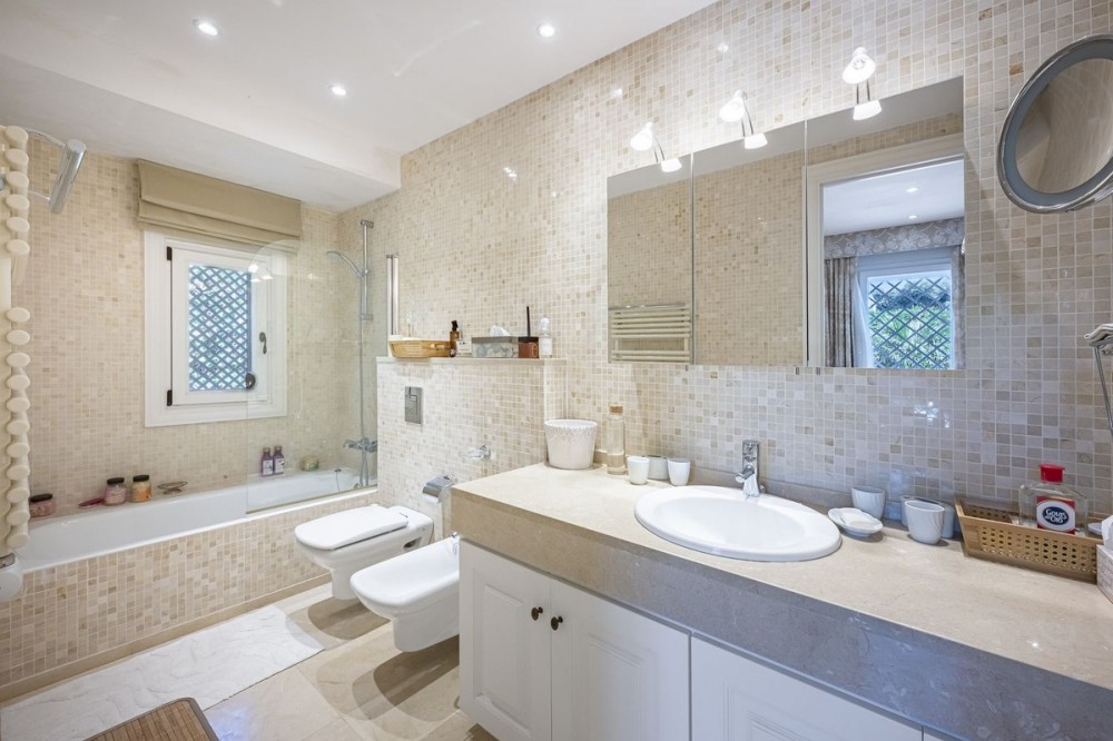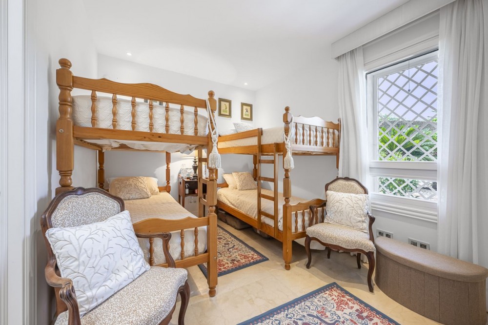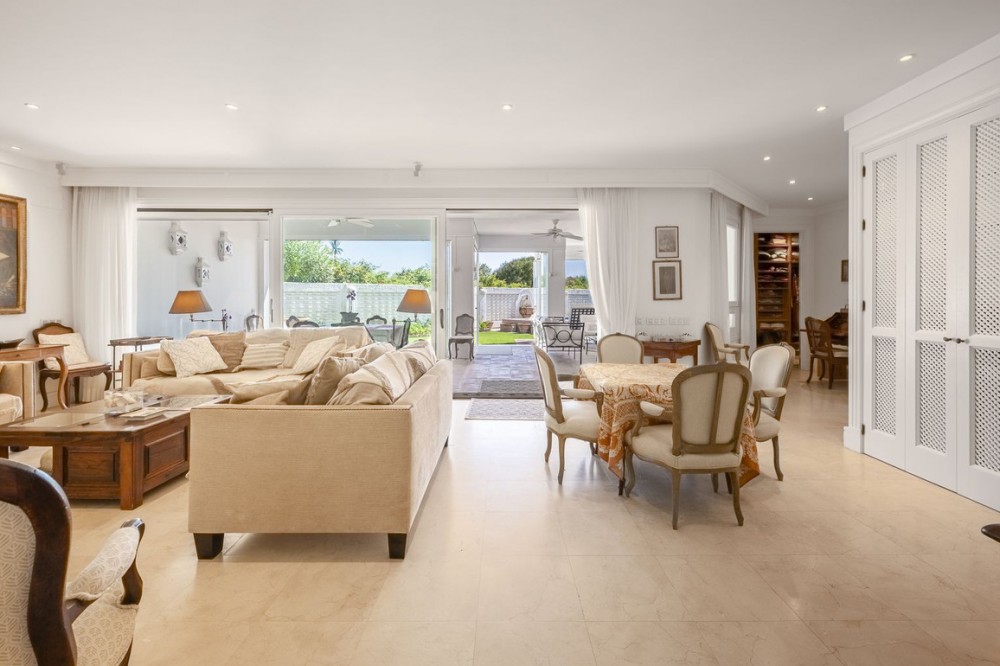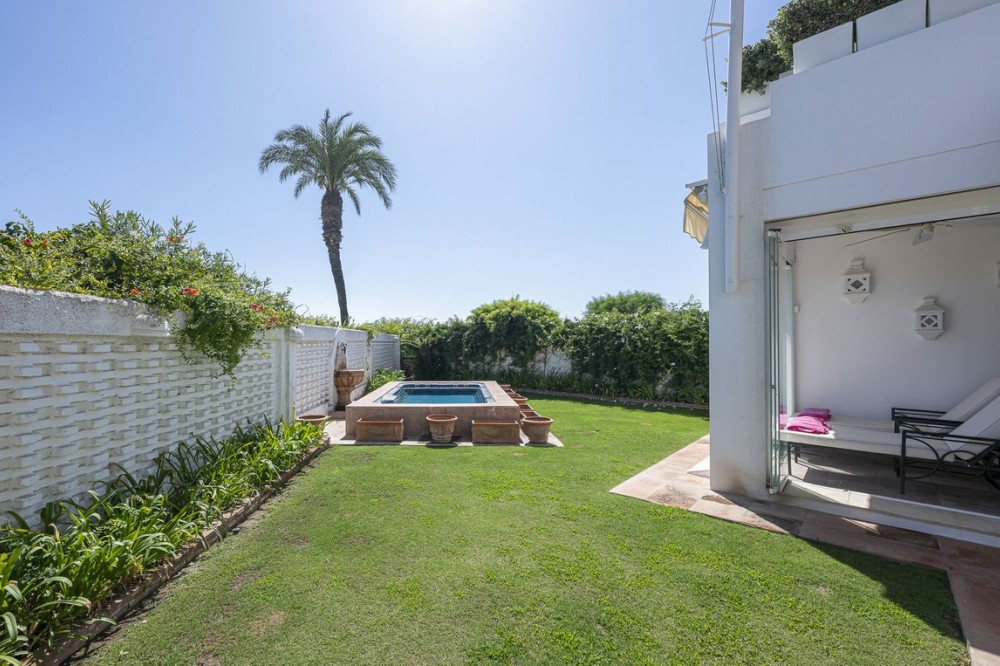 - Sotogrande Costa Frontline Beach – Exclusive Opportunity One of the very few frontline beach properties in Sotogrande, located in the prestigious gated “Bungalows” community, next to the Real Club de Golf de Sotogrande and just meters from the beach. Property Description: This single-storey semi-detached bungalow with a roof terrace was completely rebuilt in 2010. Upon entering, you are greeted by a beautiful walled garden with plunge pool (currently a jacuzzi) and an open, light-filled layout with large windows and skylights. Layout: • Living room • Kitchen with adjoining utility room • 2 double bedrooms with en-suite bathrooms • 1 additional double bedroom • Master suite with garden access and a spacious dressing area Outdoor & Terrace: • Large covered terrace with glass curtains, perfect for year-round use • Roof terrace with panoramic views: beach, Rock of Gibraltar, cork forest, and the Mediterranean Sea • Terrace kitchen, ideal for entertaining and gatherings Extras & Features: • Air conditioning and underfloor heating • Solar panels • Double-glazed sliding windows • 2 covered parking spaces + golf cart • Option to purchase membership shares at the Real Club de Golf de Sotogrande (separate negotiation) Key Details: • Built: 250 m² • Bedrooms: 4 • Bathrooms: 3 (all en-suite) • Community fees: cover gardening, water, electricity, security, maintenance, painting, parking…) ✨ A unique property in Sotogrande, perfect for enjoying beachfront living and world-class golf.