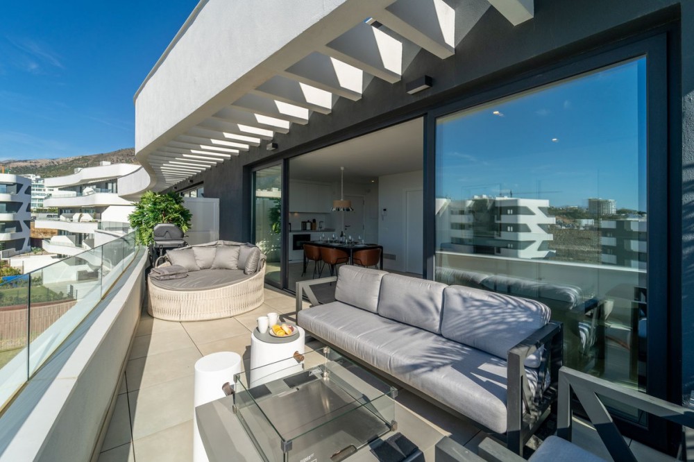 - 2-Bedroom / 2-Bathroom Apartment ✨ Rare Opportunity – Top-Floor Apartment in Higuerón West with Tourist License Located in Higuerón West, Phase 9, this elegant top-floor apartment offers exclusivity, space, and breathtaking views. It forms part of a pair of unique “twin apartments”, connected by a shared terrace door, available together or separately. Key features: • 2 bedrooms and 2 bathrooms • Modern open-plan kitchen integrated with the dining and living room • Expansive terrace accessed via large sliding glass doors • Stunning Mediterranean Sea and mountain views • 2 private parking spaces + 1 storage room • Tourist license included The community features multiple pools, manicured gardens, and renewable energy via aerothermal system. Ideally located: 10 minutes by car / 30 minutes by train from Málaga International Airport, with excellent transport links along the Costa del Sol. Price: €495,000 Option to purchase together with the adjoining 2-bed / 1-bath apartment for a total of €945,000, offering a unique opportunity for large families or investment. About Higuerón West Higuerón West is an innovative residential project on the hillside overlooking Fuengirola, set within a unique and privileged location. Spanning 500,000 m², the development offers a wealth of green spaces, walking, running and cycling trails, children’s play areas, a pet park, organic gardens, shuttle service to the Beach Club, and stations for bicycles and electric cars. A co-working space is also included, designed to encourage networking and creativity. Perfectly located, this residential and service area is just 10 minutes by car or 30 minutes by train from Málaga International Airport, with excellent public transport connections to all major destinations along the Costa del Sol. This is truly a one-of-a-kind opportunity to acquire two exceptional homes within one of the Costa del Sol’s most sought-after communities.
