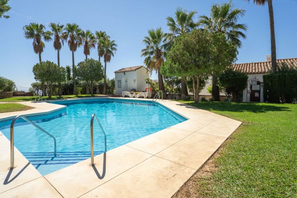 - Sunny Townhouse with Panoramic Sea Views in Mijas La Nueva Discover this perfectly oriented, southeast-facing townhouse in the sought-after Mijas La Nueva community. This charming 2-bed, 2-bath home is designed for the sun, featuring a large private garden and a terrace with stunning, panoramic sea views. The interior is full of character with a cozy brick fireplace and a newly renovated, contemporary bathroom. As a resident, enjoy access to two large swimming pools and tennis courts, all just 2 km from the heart of Mijas Pueblo. It's the perfect blend of comfort, views, and location.