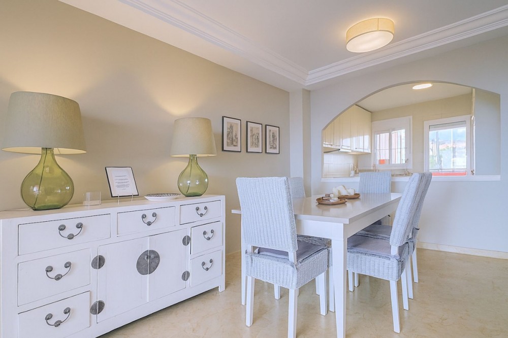 - This is a fantastic property situated in Bermuda Beach, in an enviable front line beach position offering panoramic sea views. The property has been renovated to a high standard including a new kitchen and bathrooms in a modern contemporary style. The resulting effect is stunning and makes a perfect luxurious family home. The views can be appreciated from the moment you enter the property giving the "wow" factor. There is ample space on the terrace which leads off from the living room - enough for sun-beds as well as a large dining table and chairs. Upstairs are the bedrooms with the Master bedroom having an ensuite bathroom and its own spacious balcony with those incredible sea views and two further guest bedrooms sharing a bathroom. There is a private space for the car and there is a supermarket and restaurants within easy walking distance and it is only 10 minutes by car to arrive at the town of Estepona. A great value for money property in an unbeatable location. Short term rentals are permitted.