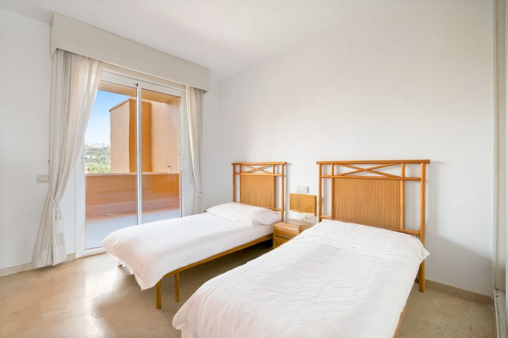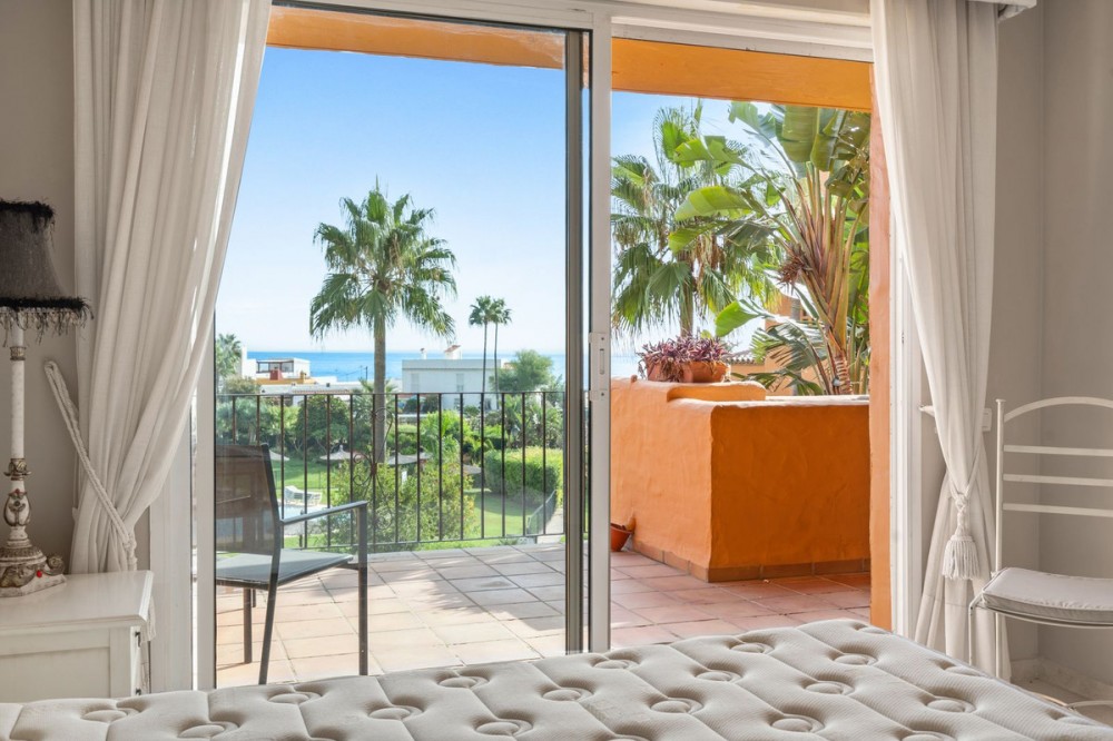 - Fantastic first-floor apartment in one of Manilva’s most exclusive beachfront complexes, Los Granados de Duquesa. It offers three spacious bedrooms and two bathrooms. The master bedroom has an en-suite bathroom and direct access to a terrace with sea views, while the second bedroom enjoys another southwest-facing terrace that brings plenty of natural light. The property also features direct access to the beach and promenade, 24-hour security with video intercom and CCTV, as well as individual air conditioning in every room. The community offers a swimming pool and tropical gardens, and the apartment includes a private underground parking space. Just a short walk from La Duquesa marina, this is a unique opportunity to enjoy the Mediterranean lifestyle in an unbeatable location.