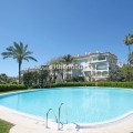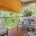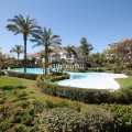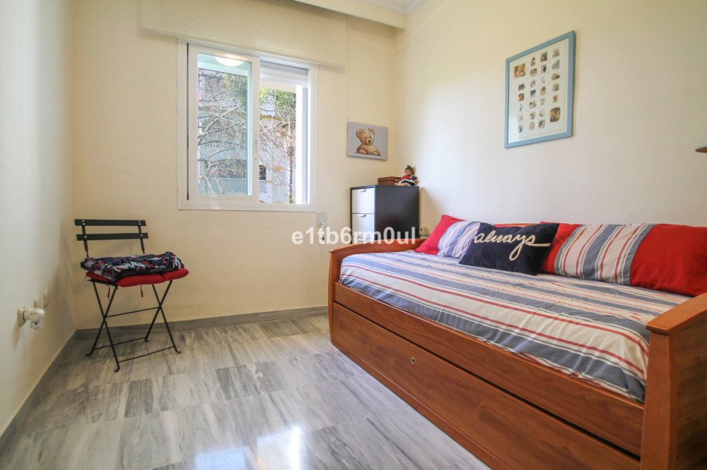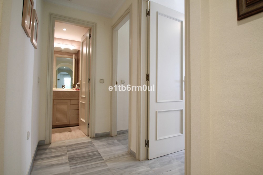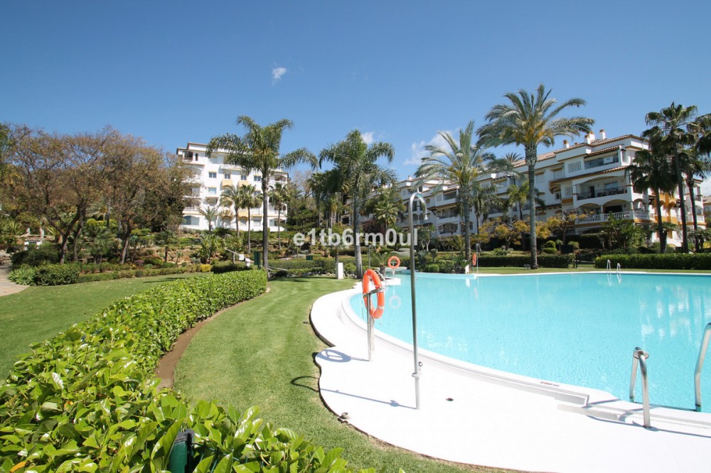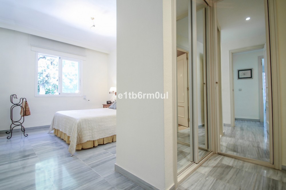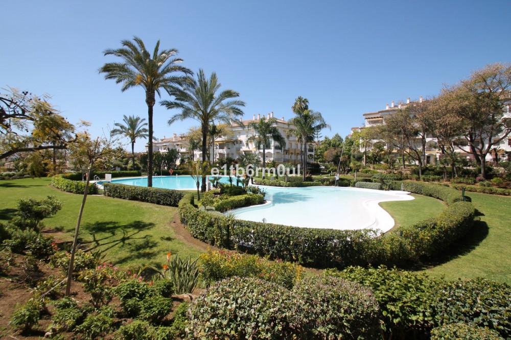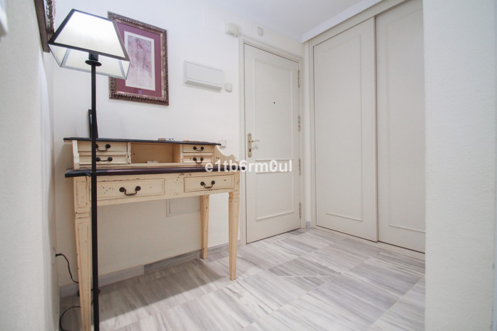 - This elegant, southwest-facing corner apartment with views over gardens and the pool towards the Mediterranean is situated on the prestigious Marbella Golden Mile, Marbella, offering a lifestyle in one of the most sought-after locations on the Costa del Sol. Within a two-minute walk to the beach, and within easy walking distance of many international and local restaurants, stores, transport and the town centre. The property features three spacious bedrooms and two modern bathrooms, including one en-suite, providing ample accommodation for families or those seeking a comfortable retreat. The apartment is presented in excellent condition and comes fully furnished, with marble floors throughout and a fully fitted kitchen equipped with modern appliances. Additional conveniences include air conditioning, an electric blind in the living room, fitted wardrobes, and a utility room. The 15m2 terrace provides ample space for relaxation, al fresco dining or sunbathing. The property also includes an underground car parking space, additional communal outdoor parking for guests and a storage room. Residents of this secure and gated community enjoy a large communal swimming pool, beautifully maintained communal gardens, and paddle courts. The development is equipped with 24-hour security service, surveillance cameras, and a doorman, providing peace of mind. This property represents an exceptional opportunity to enjoy a luxurious lifestyle in Marbella’s Golden Mile.