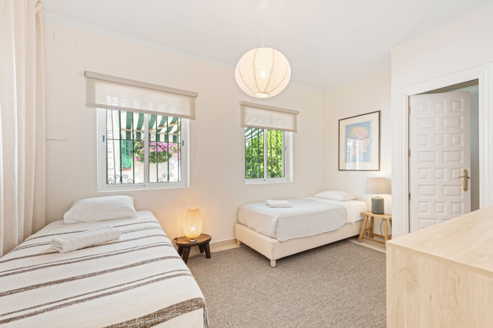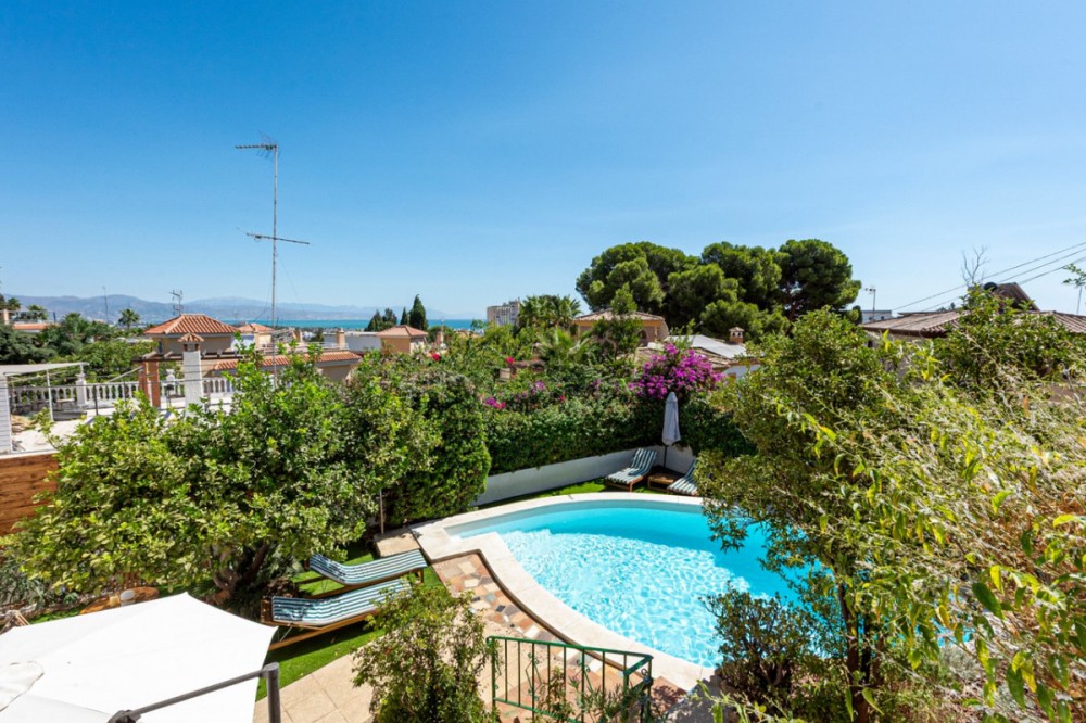 - This exquisite recently renovated Mediterranean-style villa invites you to enjoy the serenity and beauty of the surroundings. With an architectural design that harmonizes with its environment and an interior in Scandinavian style, this property stands on a spacious plot of 545 m², offering an oasis of comfort and elegance. The villa comprises a total of 5 bedrooms and 3 bathrooms. Three of the bedrooms are located in the main house, where one of the bathrooms is also situated. Additionally, the property features two independent annexes for guests, each with a bedroom and a bathroom, and one of them includes a practical kitchen, providing extra privacy and comfort. The exterior of the villa is a true delight and presents itself as a private oasis, surrounded by a wide variety of plants and trees that convey freshness and tranquility. The well-maintained garden encircles the private pool, creating a perfect spot for relaxation and sunbathing. Numerous charming outdoor spaces include an open terrace, ideal for al fresco lunches or dinners under the stars, and a barbecue area that promises unforgettable moments with family and friends. In addition to its aesthetic beauty, this villa is equipped with a garage that provides parking space, ensuring that your vehicles are always protected. The fireplace in the living room adds a cozy touch, transforming the common areas into warm retreats. For added convenience, the property includes a laundry room, optimizing space and allowing for a more organized lifestyle. With a design that evokes the essence of the Mediterranean, this villa is not just a home, but a lifestyle. The combination of open and well-lit spaces, along with the quality of its finishes, offers not only comfort but an unparalleled living experience. With the stunning Malaga coastline just minutes away, this villa becomes the ideal starting point to enjoy the beach and the various activities the region has to offer. The property also has a tourist license, allowing for the continuation of vacation rental activities if desired. At the same time, it is a magnificent option as a family home, with ample space to comfortably host guests.