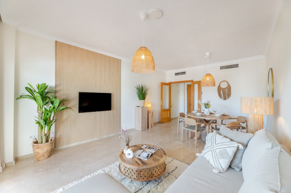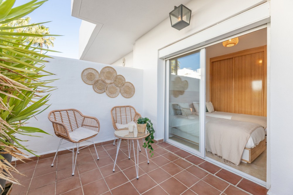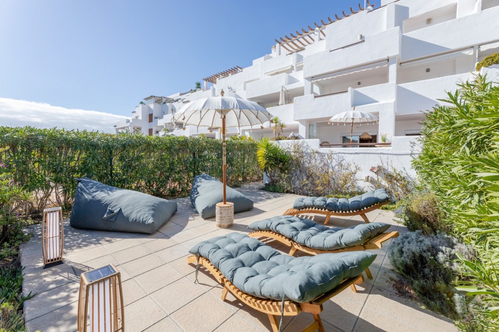 - Step into your own slice of Mediterranean living with this welcoming ground floor apartment. Designed for comfort and easy outdoor living, it offers 2 bright bedrooms and 2 bathrooms, including a private en-suite for added convenience. The heart of the home is its generous 100m² garden, where you can unwind in your private jacuzzi or share long summer evenings with friends and family. From the terrace, you’ll enjoy partial sea views, a gentle reminder of how close the coast is. Nestled within a secure gated community, you’ll have access to a refreshing communal pool and the peace of mind that comes with private underground parking. Life here means being just a 20-minute stroll or quick 5-minute drive to the beach, with Estepona only 10 minutes away and Marbella just 15 minutes by car. For a taste of luxury, the vibrant Laguna Beach Club is only 5 minutes down the road. This is more than a home—it’s a place to slow down, soak up the sun, and truly enjoy the Costa del Sol lifestyle.