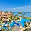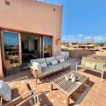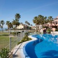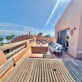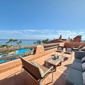 - Presenting a sophisticated penthouse situated in the exclusive Mar Azul development, East of Estepona town. This 1 bedroom, 1 bathroom property spans 80m² of meticulously maintained living space, complemented by an expansive 100m² private terrace with panoramic views to the sea and surroundings. Ideally positioned on the front line of the beach, the residence enjoys stunning panoramic, sea, garden, and pool views, offering a rare opportunity to embrace the quintessential Costa del Sol lifestyle. The penthouse is offered fully furnished and features a fully fitted and equipped kitchen, marble floors, and a spacious living and dining area that seamlessly connects to the terrace. Modern comforts include air conditioning, underfloor heating in the bathrooms, double glazing, and security shutters, ensuring a pleasant living environment year-round. There is a garage space and store room included. Residents of Mar Azul enjoy access to a wealth of communal facilities, including a heated indoor pool, gym, beautifully landscaped gardens, and a solarium. Security is paramount, with a gated community, 24-hour security service, surveillance cameras, video entrance, and a doorman. The building is equipped with a lift, and a private garage space is included, alongside ample visitor parking. The property is maintained in excellent condition, with a dedicated 24-hour service available for residents. The location is second to none, with amenities, transport links, shops, schools, restaurants, and leisure facilities all within easy reach. Golf courses, playgrounds, and the vibrant hubs of Puerto Banús, Marbella Centre, and Estepona Centre are nearby, making this penthouse an exceptional choice for those seeking a refined beachfront residence with unparalleled convenience and comfort.