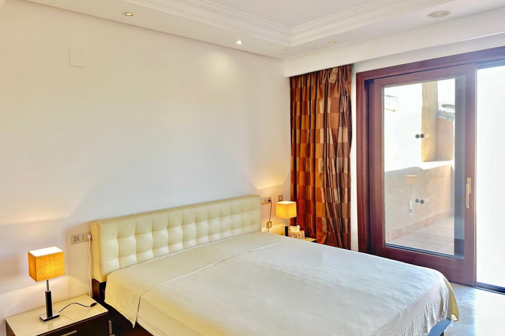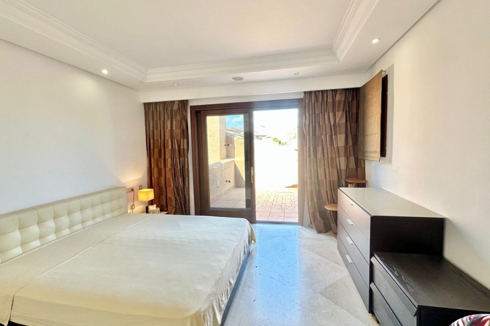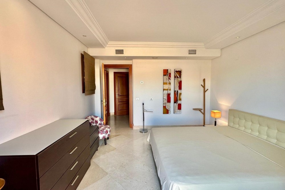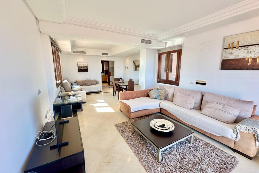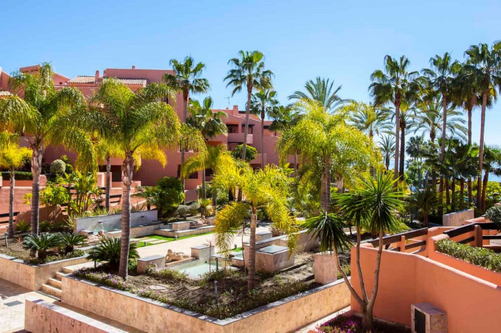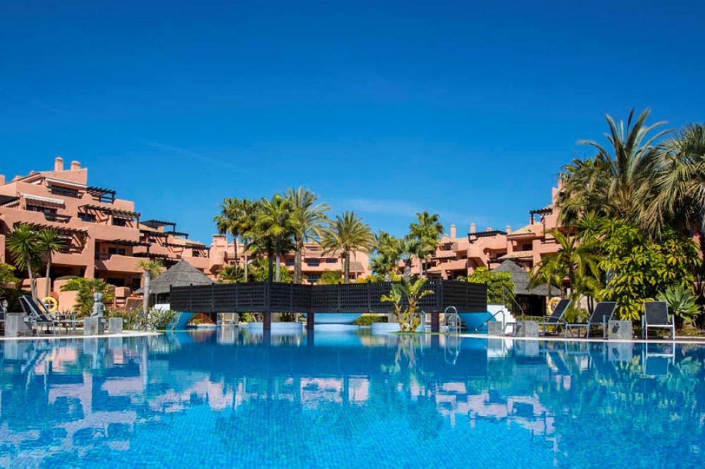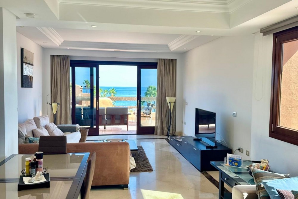 - Presenting a sophisticated penthouse situated in the exclusive Mar Azul development, East of Estepona town. This 1 bedroom, 1 bathroom property spans 80m² of meticulously maintained living space, complemented by an expansive 100m² private terrace with panoramic views to the sea and surroundings. Ideally positioned on the front line of the beach, the residence enjoys stunning panoramic, sea, garden, and pool views, offering a rare opportunity to embrace the quintessential Costa del Sol lifestyle. The penthouse is offered fully furnished and features a fully fitted and equipped kitchen, marble floors, and a spacious living and dining area that seamlessly connects to the terrace. Modern comforts include air conditioning, underfloor heating in the bathrooms, double glazing, and security shutters, ensuring a pleasant living environment year-round. There is a garage space and store room included. Residents of Mar Azul enjoy access to a wealth of communal facilities, including a heated indoor pool, gym, beautifully landscaped gardens, and a solarium. Security is paramount, with a gated community, 24-hour security service, surveillance cameras, video entrance, and a doorman. The building is equipped with a lift, and a private garage space is included, alongside ample visitor parking. The property is maintained in excellent condition, with a dedicated 24-hour service available for residents. The location is second to none, with amenities, transport links, shops, schools, restaurants, and leisure facilities all within easy reach. Golf courses, playgrounds, and the vibrant hubs of Puerto Banús, Marbella Centre, and Estepona Centre are nearby, making this penthouse an exceptional choice for those seeking a refined beachfront residence with unparalleled convenience and comfort.