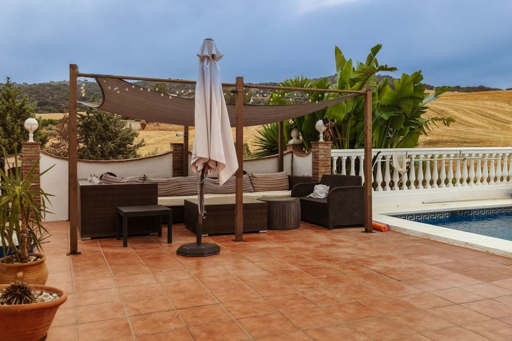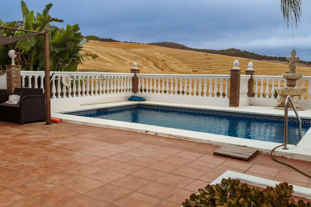 • For sale, a charming detached villa in the peaceful hamlet of Fuente Amarga, a small community of around 40 homes nestled in the enchanting Andalusian countryside. This property offers everything you’re looking for if you crave space, tranquility, and the authentic rural lifestyle—far from the hustle and bustle, yet within easy reach of essential amenities. The villa features three bedrooms and two bathrooms. One of the bedrooms includes an ensuite bathroom. The house has a solid structure, but in some areas it could use a little love and attention to truly shine. The property sits on a generous, completely flat plot of just over 2,000 m². Surrounding the swimming pool are several terraces, **each offering breathtaking views** over the rolling Andalusian landscape. Whether you're enjoying your morning coffee at sunrise or unwinding under the stars in the evening, the views are nothing short of spectacular. Next to the villa is a detached garage. The house is connected to mains water and electricity and also benefits from its own water storage. There is a well on the property as well, although its current functionality is unknown. For shopping, dining or local events, the charming villages of Villanueva de la Concepción and Almogía are both just 10 kilometers away. This means convenient access to daily necessities without compromising the peace and spaciousness that this special location offers. This villa is perfect for anyone seeking a characterful home with potential, in a setting where time slows down and life is defined by sunshine, nature’s rhythm, and the serene beauty of the Andalusian countryside. Important fact: The second bathroom needs to be demolished and rebuilt bacause it was not well constructed. This will be done by the current owner or by the new one after getting an interesting discount.