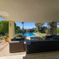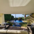- Stunning Andalusian Villa with Panoramic Sea Views – Puerto Romano, Estepona Perched at the very top of Puerto Romano, this beautiful Andalusian-style family villa offers some of the most breathtaking panoramic views on the Costa del Sol. From sunrise to sunset, enjoy sweeping vistas that stretch from La Concha mountain to the east, across the Mediterranean Sea, Gibraltar, and the Atlas Mountains of Morocco to the west. The villa sits on a generous plot of almost 1,000 m², surrounded by landscaped gardens that ensure privacy, tranquility, and a true sense of escape. A large private swimming pool takes center stage, while an automated gate opens to the driveway with both open and covered parking. The villa comprises 3 spacious bedrooms, each with its own ensuite bathroom, plus a guest toilet. The ground floor features a large lounge with fireplace and dining area, a separate fully fitted kitchen, and a charming glassed-in west-facing dining patio perfect for enjoying sunsets all year round. From the lounge and covered terrace, the elevated position allows uninterrupted views over the pool and gardens. Upstairs, a cozy open lounge area overlooks the main living room. To the left, a bedroom suite with built-in wardrobes and ensuite bathroom opens to a large south-facing terrace with commanding sea views. To the right, another generous ensuite bedroom enjoys the same spectacular outlook. Additional features include outdoor storage cabins, fibre optic internet, alarm system, burglar bars, central heating, air-conditioning, marble floors, and a gas stove. Located just 10 minutes’ drive from Estepona town and its beaches, this villa combines traditional Andalusian charm with modern comforts in a peaceful residential community. An exceptional family home or holiday retreat to enjoy the very best of the Costa del Sol lifestyle