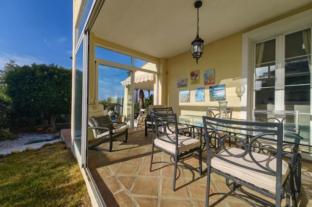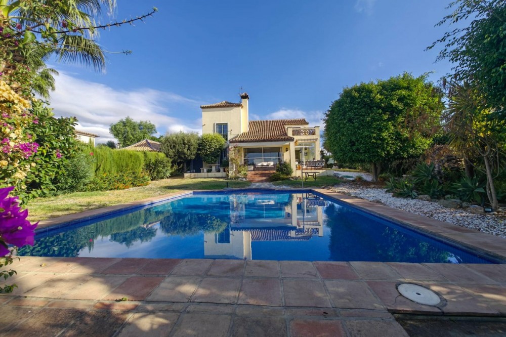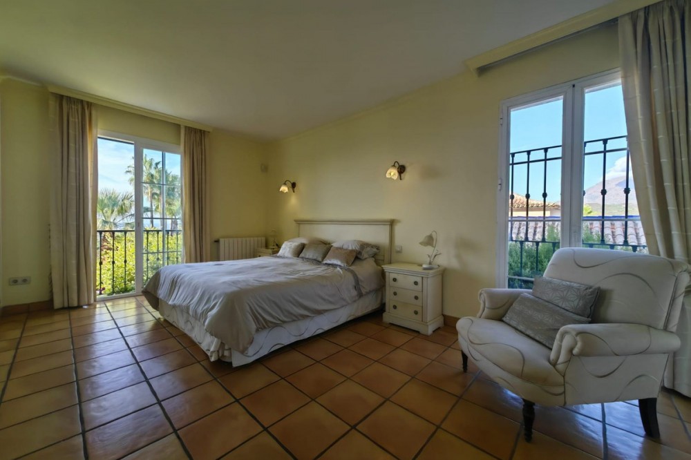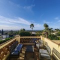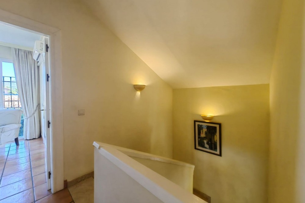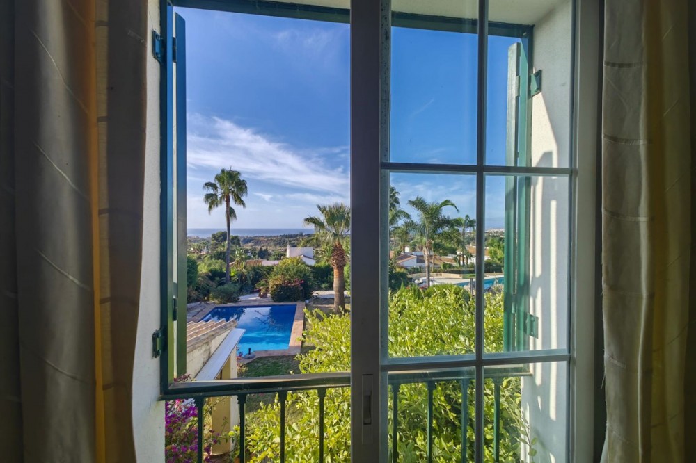 - Stunning Andalusian Villa with Panoramic Sea Views – Puerto Romano, Estepona Perched at the very top of Puerto Romano, this beautiful Andalusian-style family villa offers some of the most breathtaking panoramic views on the Costa del Sol. From sunrise to sunset, enjoy sweeping vistas that stretch from La Concha mountain to the east, across the Mediterranean Sea, Gibraltar, and the Atlas Mountains of Morocco to the west. The villa sits on a generous plot of almost 1,000 m², surrounded by landscaped gardens that ensure privacy, tranquility, and a true sense of escape. A large private swimming pool takes center stage, while an automated gate opens to the driveway with both open and covered parking. The villa comprises 3 spacious bedrooms, each with its own ensuite bathroom, plus a guest toilet. The ground floor features a large lounge with fireplace and dining area, a separate fully fitted kitchen, and a charming glassed-in west-facing dining patio perfect for enjoying sunsets all year round. From the lounge and covered terrace, the elevated position allows uninterrupted views over the pool and gardens. Upstairs, a cozy open lounge area overlooks the main living room. To the left, a bedroom suite with built-in wardrobes and ensuite bathroom opens to a large south-facing terrace with commanding sea views. To the right, another generous ensuite bedroom enjoys the same spectacular outlook. Additional features include outdoor storage cabins, fibre optic internet, alarm system, burglar bars, central heating, air-conditioning, marble floors, and a gas stove. Located just 10 minutes’ drive from Estepona town and its beaches, this villa combines traditional Andalusian charm with modern comforts in a peaceful residential community. An exceptional family home or holiday retreat to enjoy the very best of the Costa del Sol lifestyle