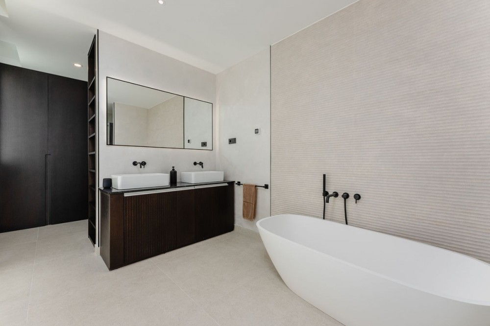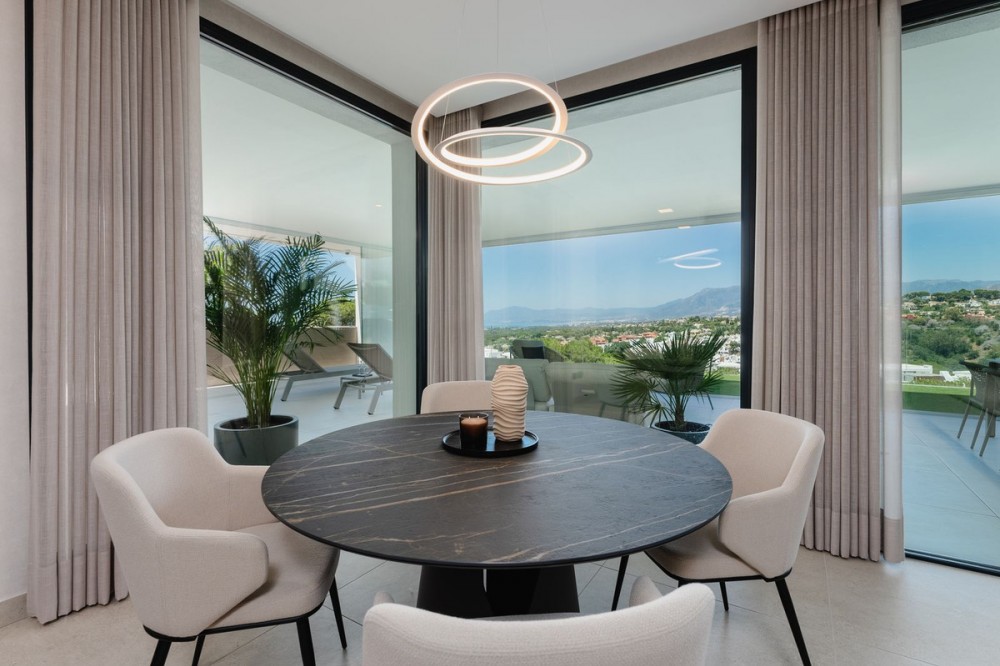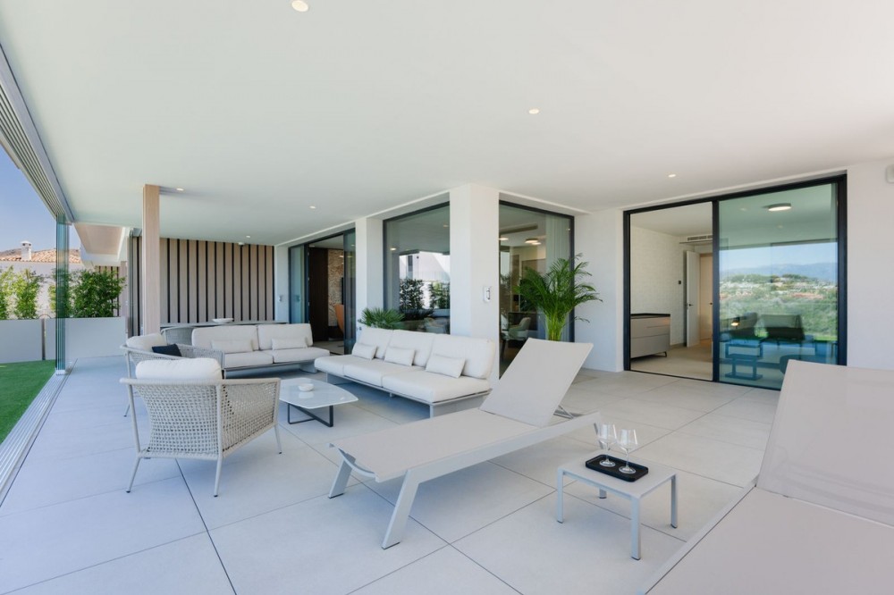 - Unique property located in one of the most exclusive Boutique complexes in Marbella East, Marbella Sunset, right above the UNESCO protected Artola sand dunes and just a few steps from the golf course. Closed residential complex consisting of only 14 homes of which this one has a privileged position as it is located on the best corner offering unparalleled privacy and enviable views. It has been customized from the beginning of construction with strict supervision of improvement works. It has a very practical distribution emphasizing comfort, residents' privacy, and the use of Mediterranean light. The connection of interior spaces with its spacious terraces is also possible thanks to the high-quality floor-to-ceiling windows. The stunning views of the Mediterranean Sea will follow you around every corner of the spacious apartment. It consists of 3 bedrooms, 2 bathrooms, and an elegant guest toilet. The master bedroom has direct access to a very private part of the terrace and garden. Part of the terrace is glazed with tinted safety glass panels, giving it an even more special touch. Fully equipped kitchen with all high-end appliances from the Siemens brand, including a wine cellar and ice machine. The finishes in noble materials such as stone and wood have all been chosen as an extra touch by the property, there is no comparison with the standard of the original promoter. Underfloor heating, individualized air conditioning by rooms, designer LED lighting, built-in wardrobes, and ample storage space are just examples of features that will satisfy the most demanding customer. The property offers the advantages of being part of a closed residential complex with Mediterranean pools and gardens, while at the same time conveying the feeling of a villa with a private garden, very spacious terraces in a privileged natural environment, and the best sunsets in Marbella. It includes two parking spaces in the underground garage and a storage room. 10-minute drive from Marbella city center. A few steps from Cabopino golf course. A few minutes from the best beaches of the Costa del Sol and the Cabopino harbor with its restaurants, cafes, shops, and sports and leisure facilities. 30 minutes from Malaga International Airport and the capital of the Costa del Sol with all its historical, cultural, and gastronomic offerings.