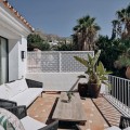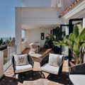 - Located in the exclusive Marbella Hill Village, within the prestigious gated Marbella Hill Club, this elegant townhouse offers a rare combination of charm, privacy, and panoramic views. Just five minutes from Marbella Club, Puente Romano, and the Golden Mile, it enjoys one of the most privileged addresses on the Costa del Sol, nestled between the Mediterranean Sea and La Concha mountain. The entrance sets the tone with a private patio shaded by orange trees and flowering plants, creating a welcoming Mediterranean atmosphere. Inside, the main living area impresses with high ceilings, a real fireplace, and uninterrupted sea views from every window and even from the sofa. The modern kitchen, fitted with premium international brands, connects seamlessly to the dining room and opens onto a south-facing terrace with remote-controlled shades – ideal for enjoying Marbella’s mild climate year-round. Upstairs, the master suite features a stylish ensuite bathroom, a spacious walk-in closet, and a large terrace with stunning sea views. On the garden level, three additional bedrooms and two bathrooms open to a private garden also overlooking the Mediterranean. This floor is completed by a cinema room, storage space, and a laundry room – ensuring both comfort and practicality. With approximately 184 m² of interior space, 55 m² of terraces, and a 149 m² private garden, the property is perfectly oriented to the south-southeast, guaranteeing abundant natural light, sunny mornings, and mild winters. The home is offered ready to move into, with the flexibility to purchase furnished or unfurnished. As part of Marbella Hill Club, residents benefit from 24-hour private security and controlled access, ensuring peace of mind in one of Marbella’s most desirable enclaves. World-class golf courses, exclusive beaches, fine dining, luxury shopping, and the vibrant nightlife of Puerto Banús are all just a short drive away. Whether as a permanent residence, a holiday retreat, or a secure investment, this townhouse offers the best of Marbella living: elegance, comfort, and the perfect balance between sea and mountain.