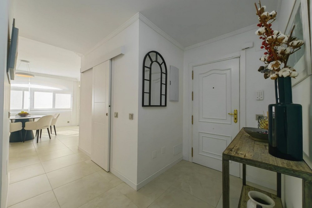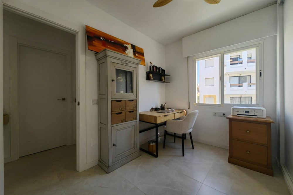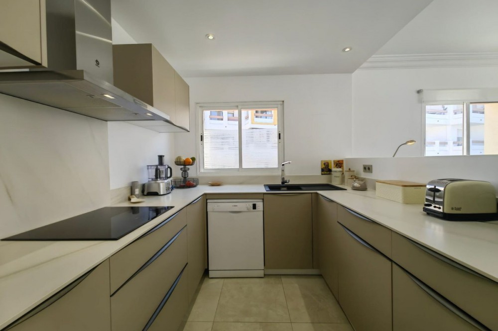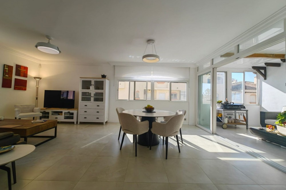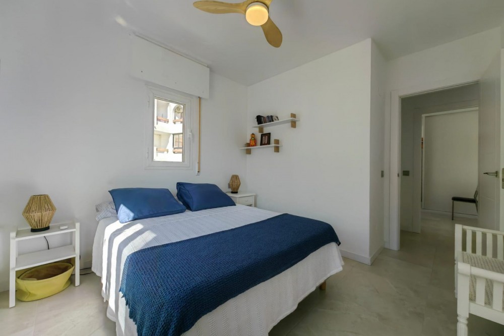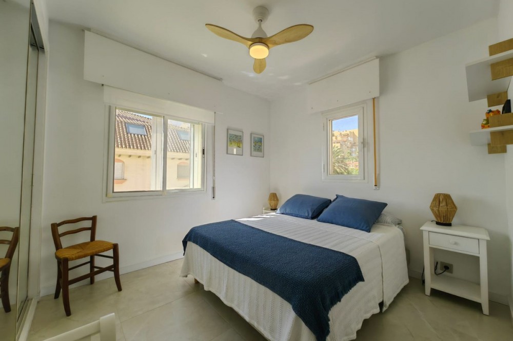 - Exclusive Frontline Beach Apartment in Marina Bay, Estepona Situated in the sought-after Marina Bay urbanisation, perfectly positioned between the Port of Estepona and the popular Playa del Cristo, this stunning fourth-floor apartment offers the very best of beachfront living. With direct access to the beach through two private entryways, it combines elegance, convenience, and lifestyle in one of Estepona’s most desirable locations. The apartment welcomes you with an elegant central lobby. To the right, a spacious open-plan kitchen, dining, and lounge area unfolds, seamlessly connecting to a covered terrace with a fully furnished lounge — ideal for enjoying sunny mornings and the cooler shade of the afternoons thanks to its southeast orientation. On the opposite side, the large master bedroom features an ensuite bathroom and breathtaking sea views. Two further guest bedrooms, one with the same stunning outlook, share a newly refurbished bathroom. Recently renovated throughout with high-quality contemporary finishes, the apartment is key-ready, with brand-new bathrooms, kitchen, windows, and doors. It is sold fully furnished and includes a private underground parking space. The urbanisation itself has undergone extensive upgrades, including new tiling, landscaped garden areas, refurbished swimming pools, and modernised elevators. Residents also benefit from on-site amenities such as a coffee shop and the upcoming wellness clinic. Just a 5-minute walk from the vibrant Marina and all local amenities, this apartment is a rare opportunity to own a stylish and completely renovated home in a prime frontline beach location.