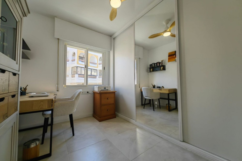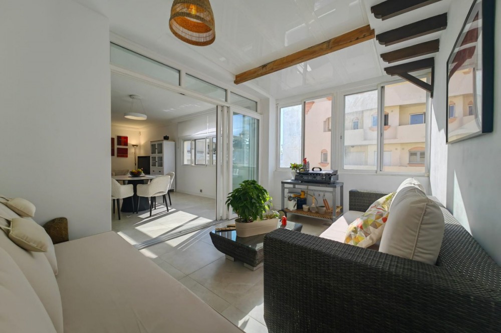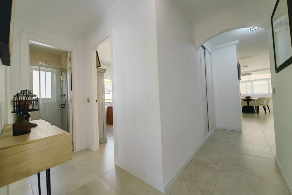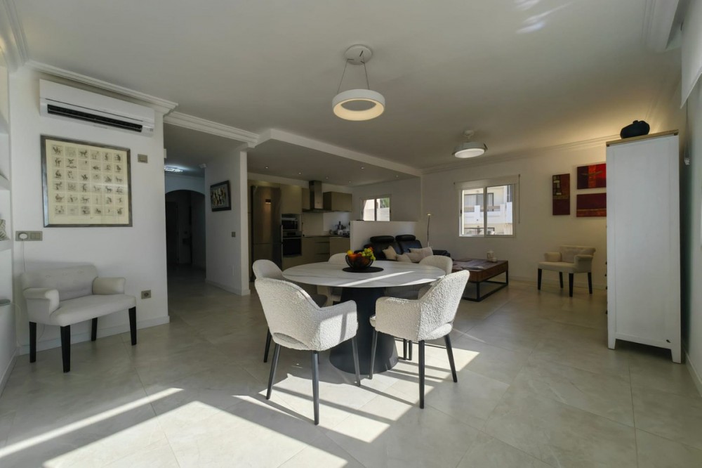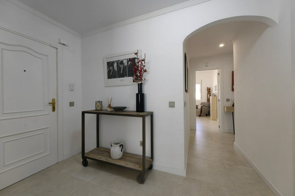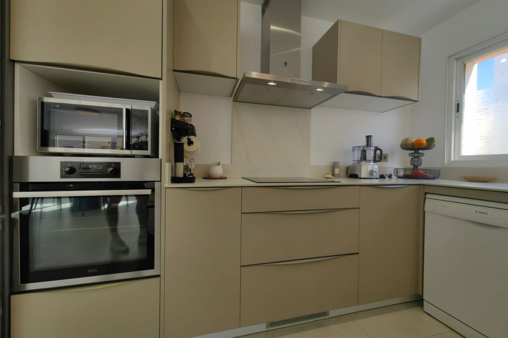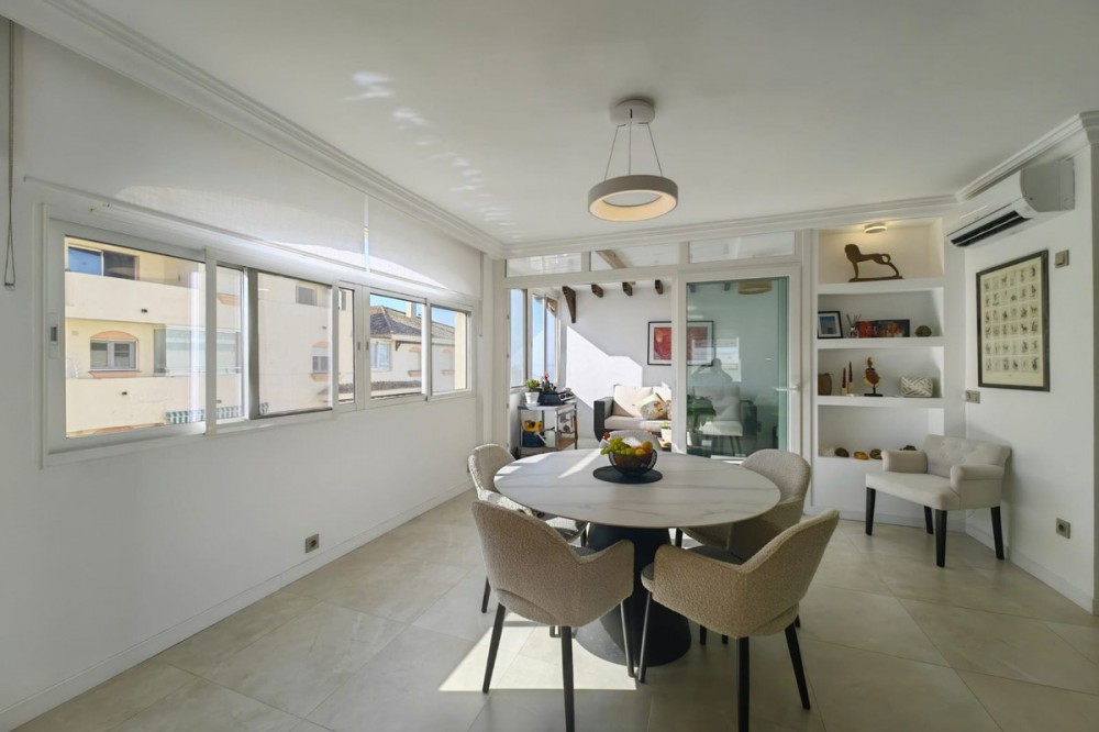 - Exclusive Frontline Beach Apartment in Marina Bay, Estepona Situated in the sought-after Marina Bay urbanisation, perfectly positioned between the Port of Estepona and the popular Playa del Cristo, this stunning fourth-floor apartment offers the very best of beachfront living. With direct access to the beach through two private entryways, it combines elegance, convenience, and lifestyle in one of Estepona’s most desirable locations. The apartment welcomes you with an elegant central lobby. To the right, a spacious open-plan kitchen, dining, and lounge area unfolds, seamlessly connecting to a covered terrace with a fully furnished lounge — ideal for enjoying sunny mornings and the cooler shade of the afternoons thanks to its southeast orientation. On the opposite side, the large master bedroom features an ensuite bathroom and breathtaking sea views. Two further guest bedrooms, one with the same stunning outlook, share a newly refurbished bathroom. Recently renovated throughout with high-quality contemporary finishes, the apartment is key-ready, with brand-new bathrooms, kitchen, windows, and doors. It is sold fully furnished and includes a private underground parking space. The urbanisation itself has undergone extensive upgrades, including new tiling, landscaped garden areas, refurbished swimming pools, and modernised elevators. Residents also benefit from on-site amenities such as a coffee shop and the upcoming wellness clinic. Just a 5-minute walk from the vibrant Marina and all local amenities, this apartment is a rare opportunity to own a stylish and completely renovated home in a prime frontline beach location.