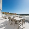 - Discover this stunning second-floor duplex penthouse, offering breathtaking panoramic views of the sea and mountains. The home features a spacious living room terrace and a rooftop terrace with a private solarium and elegant white pergola, perfect for enjoying the Mediterranean sun in complete privacy. The penthouse includes three bedrooms and three bathrooms, a private parking space, and a storage room, ensuring comfort and convenience for the whole family. Residents can enjoy a beautiful communal pool to relax and soak up the sun. The exclusive La Familia clubhouse provides access to a restaurant, indoor swimming pool, and gym. The complex itself also offers a gym and coworking space, combining luxury living with modern lifestyle amenities. Centrally located in Estepona, the property is just 5 minutes by car from the beach and nearby beach clubs. For nature and family fun, the Selwo Aventura wildlife park is a short drive away. Estepona is 10 minutes, Marbella 15 minutes, and Malaga Airport approximately 50 minutes. This penthouse offers the perfect combination of privacy, elegance, space, and a Mediterranean lifestyle with spectacular views.