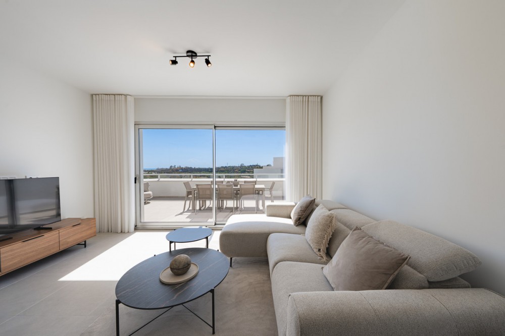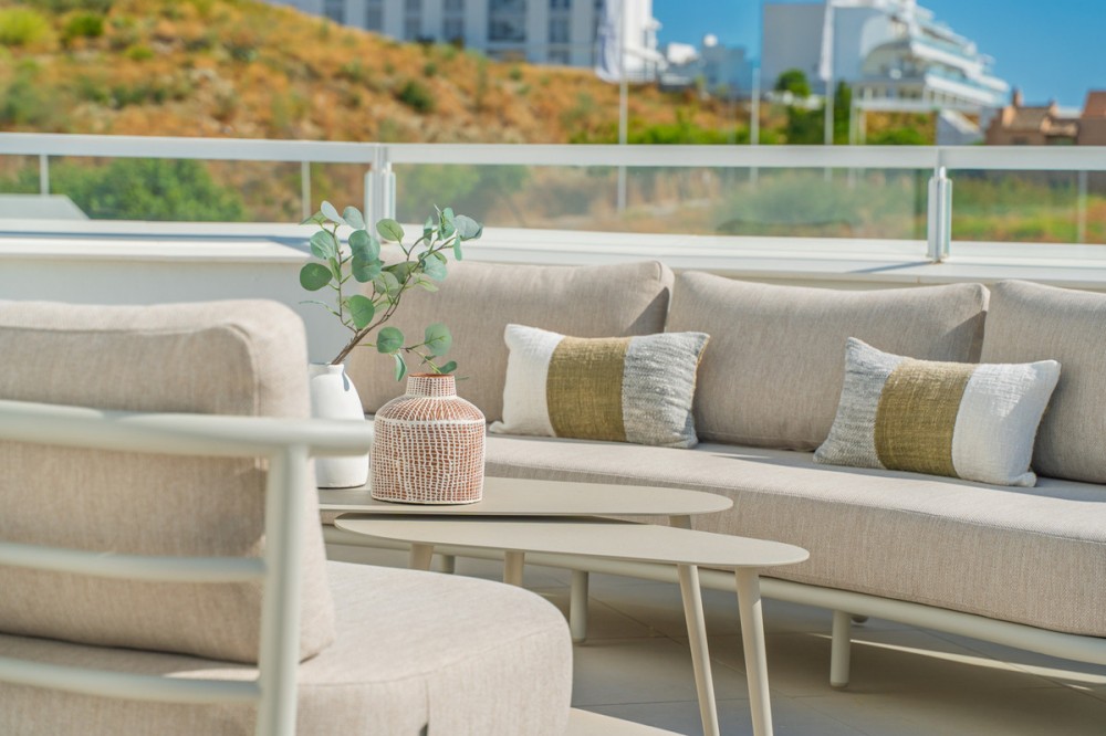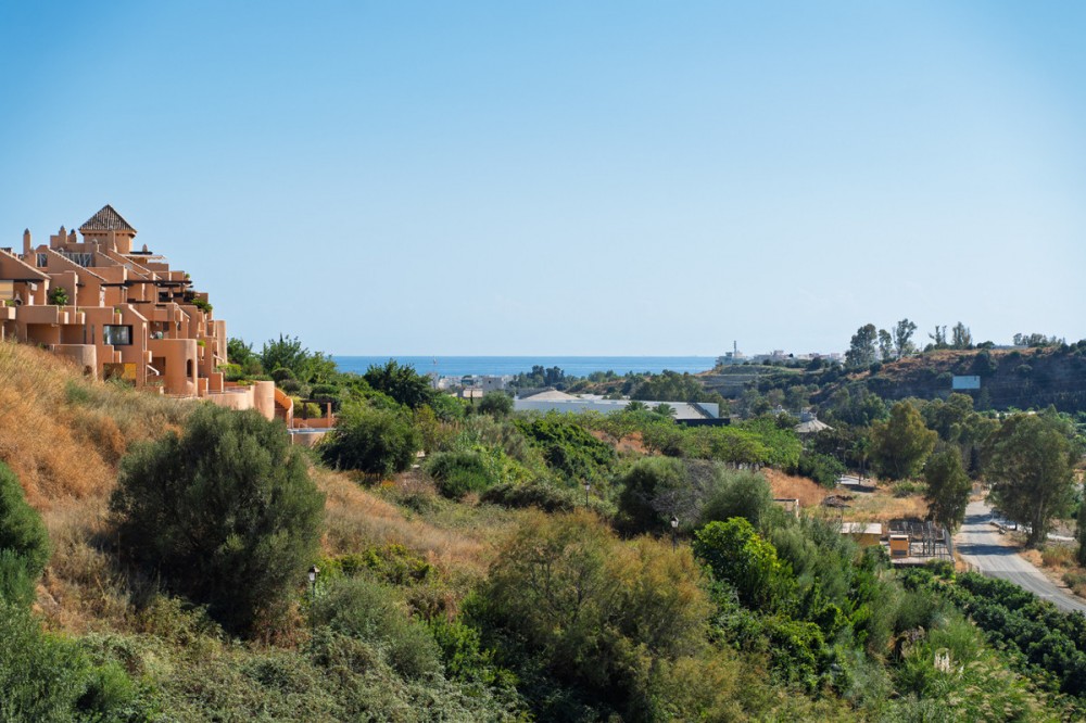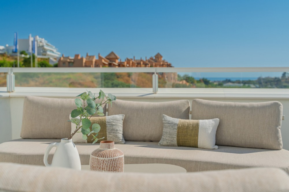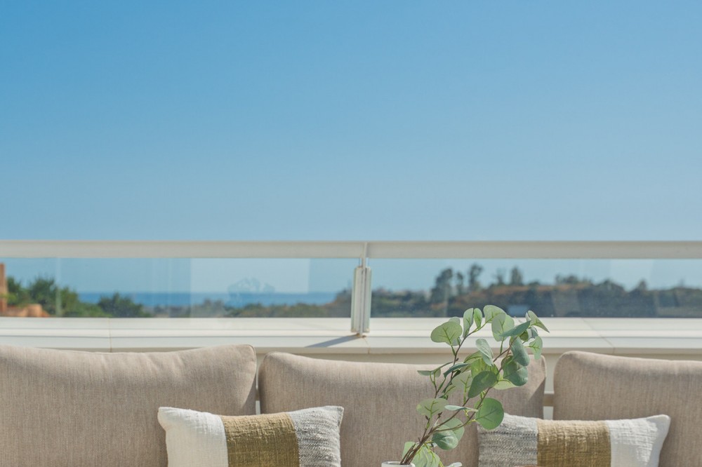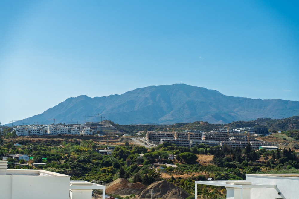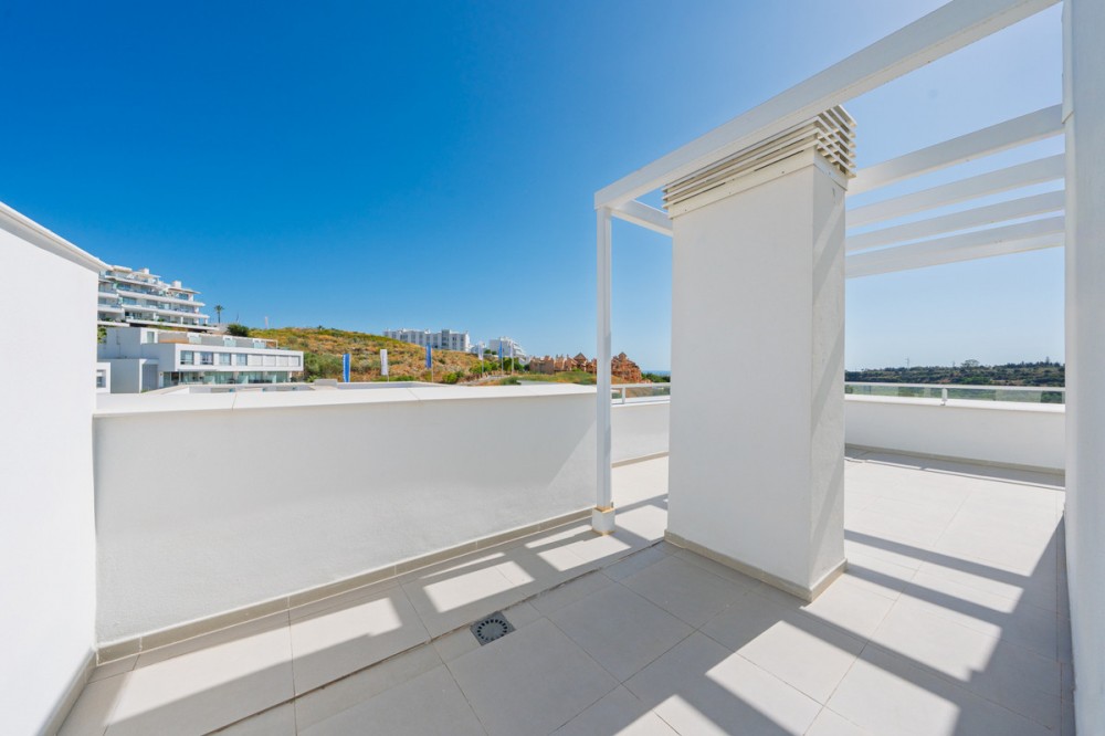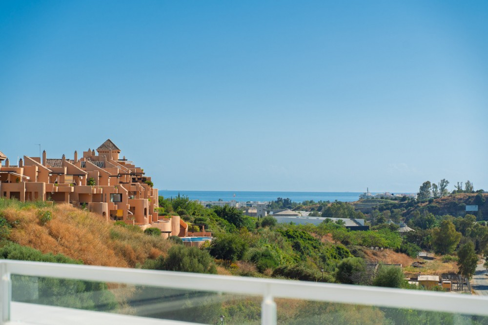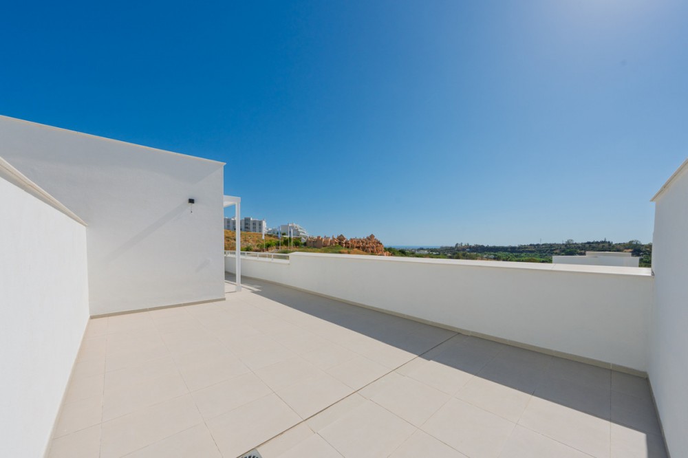 - Discover this stunning second-floor duplex penthouse, offering breathtaking panoramic views of the sea and mountains. The home features a spacious living room terrace and a rooftop terrace with a private solarium and elegant white pergola, perfect for enjoying the Mediterranean sun in complete privacy. The penthouse includes three bedrooms and three bathrooms, a private parking space, and a storage room, ensuring comfort and convenience for the whole family. Residents can enjoy a beautiful communal pool to relax and soak up the sun. The exclusive La Familia clubhouse provides access to a restaurant, indoor swimming pool, and gym. The complex itself also offers a gym and coworking space, combining luxury living with modern lifestyle amenities. Centrally located in Estepona, the property is just 5 minutes by car from the beach and nearby beach clubs. For nature and family fun, the Selwo Aventura wildlife park is a short drive away. Estepona is 10 minutes, Marbella 15 minutes, and Malaga Airport approximately 50 minutes. This penthouse offers the perfect combination of privacy, elegance, space, and a Mediterranean lifestyle with spectacular views.