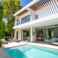 - Architectural elegance meets Mediterranean serenity in this beautifully designed villa, tucked within the exclusive Arboleda residential enclave—perfectly situated between Marbella, San Pedro and Benahavís. A home crafted for effortless indoor-outdoor living, it invites long afternoons by the heated pool, vibrant dinners under the stars, and quiet mornings wrapped in garden calm. With three levels of sophisticated design, this villa blends privacy, space and style in one of the Costa del Sol’s most connected yet peaceful corners. The main floor flows naturally from the open-plan living area and designer kitchen to the manicured garden—framed by floor-to-ceiling windows that flood the space with light. A guest suite on this level ensures comfort and flexibility. Upstairs, three en-suite bedrooms offer private terraces, generous dimensions, and a standout master with walk-in wardrobe and contemporary bathroom. The lower level adds another layer of versatility: a spacious fourth bedroom, full bathroom, separate laundry and an expansive open area perfect for a cinema, home gym, or office. Surrounded by lush greenery and built on a 550 m² plot, this villa includes a private garden, heated pool, sun terrace, and secure parking. Designed in 2021, it features premium finishes, thermal insulation, full home automation, and is sold fully furnished with high-quality, stylish furniture. A refined modern retreat, just minutes from the beach, golf courses, and international schools—where quality, comfort, and connection define everyday life.