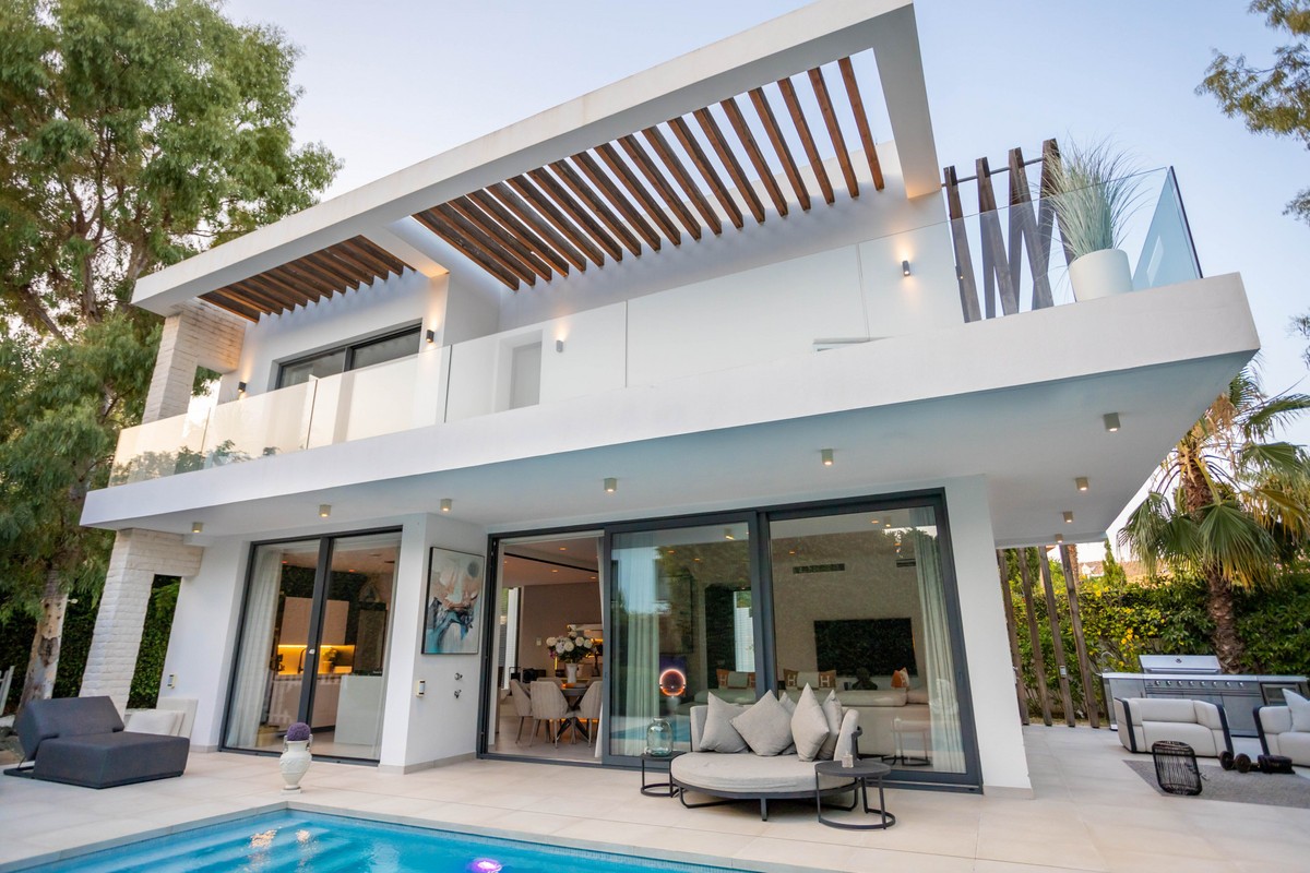 - Architectural elegance meets Mediterranean serenity in this beautifully designed villa, tucked within the exclusive Arboleda residential enclave—perfectly situated between Marbella, San Pedro and Benahavís. A home crafted for effortless indoor-outdoor living, it invites long afternoons by the heated pool, vibrant dinners under the stars, and quiet mornings wrapped in garden calm. With three levels of sophisticated design, this villa blends privacy, space and style in one of the Costa del Sol’s most connected yet peaceful corners. The main floor flows naturally from the open-plan living area and designer kitchen to the manicured garden—framed by floor-to-ceiling windows that flood the space with light. A guest suite on this level ensures comfort and flexibility. Upstairs, three en-suite bedrooms offer private terraces, generous dimensions, and a standout master with walk-in wardrobe and contemporary bathroom. The lower level adds another layer of versatility: a spacious fourth bedroom, full bathroom, separate laundry and an expansive open area perfect for a cinema, home gym, or office. Surrounded by lush greenery and built on a 550 m² plot, this villa includes a private garden, heated pool, sun terrace, and secure parking. Designed in 2021, it features premium finishes, thermal insulation, full home automation, and is sold fully furnished with high-quality, stylish furniture. A refined modern retreat, just minutes from the beach, golf courses, and international schools—where quality, comfort, and connection define everyday life.