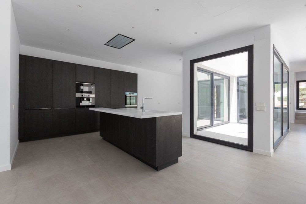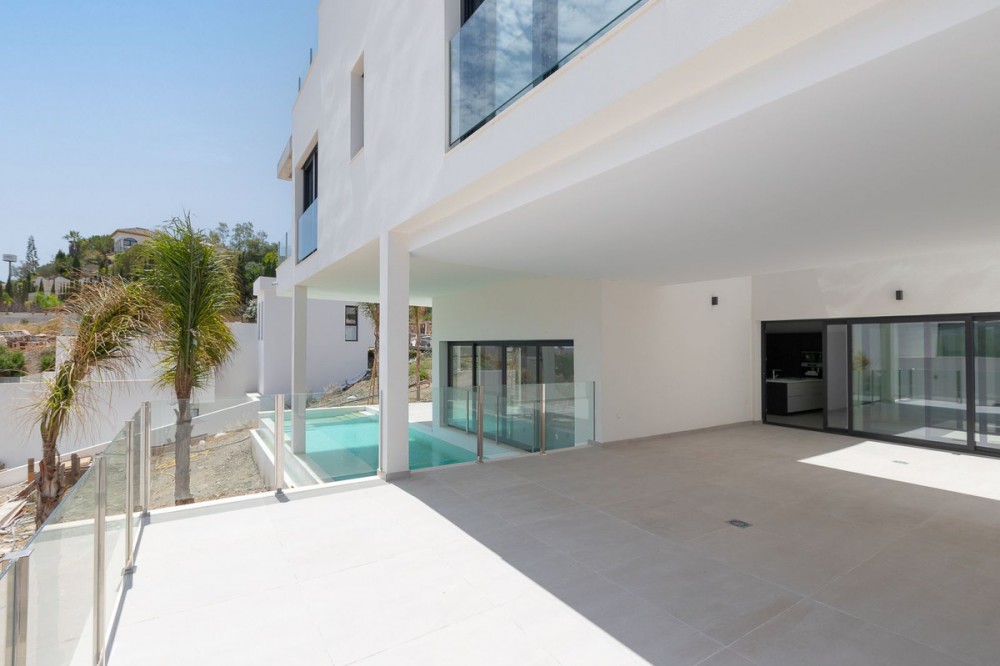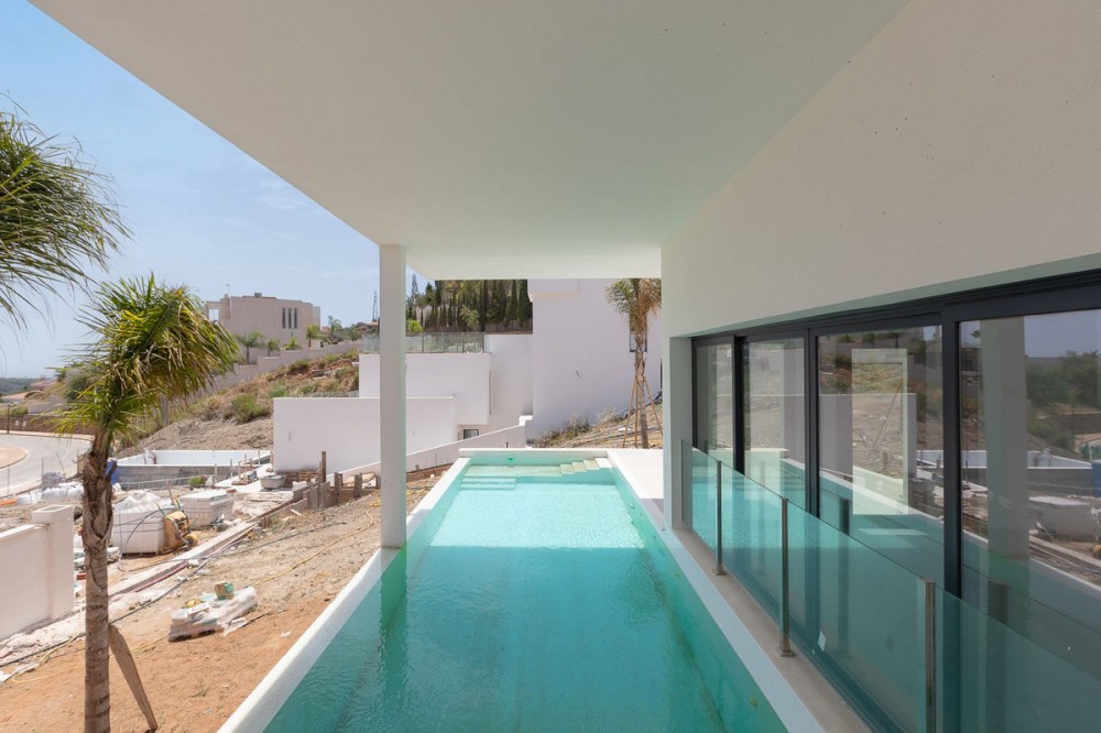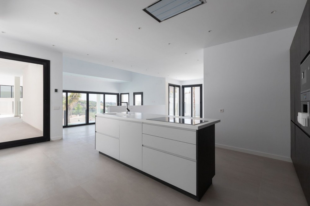 - This exclusive, newly constructed villa is located in the prestigious area of Elviria, just a short distance from the renowned Santa María Golf course. Built to the highest standards and featuring a sleek modern design, the property offers breathtaking open views towards the sea. The villa is distributed over two floors plus a basement, all conveniently connected by an elevator. On the ground floor, you’ll find a spacious and bright living area integrated with a contemporary open-plan kitchen. Large sliding doors open onto a generous terrace with panoramic views and direct access to the infinity pool and landscaped garden. This level also includes a en-suite bedroom, ideal for guests. The first floor features three additional bedrooms, all with en-suite bathrooms. The master suite offers spectacular sea views and access to a large solarium — the perfect spot to relax and enjoy the Mediterranean sunsets. In the basement, there is a private garage with space for two cars and an additional multipurpose room that can be used as a gym, home cinema, or guest suite.