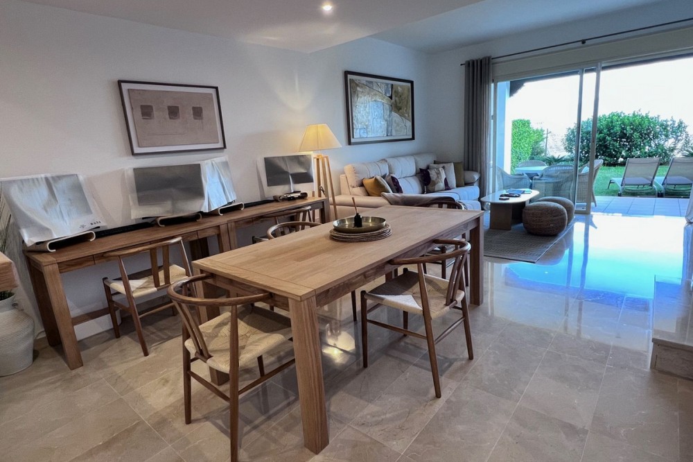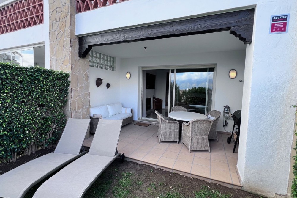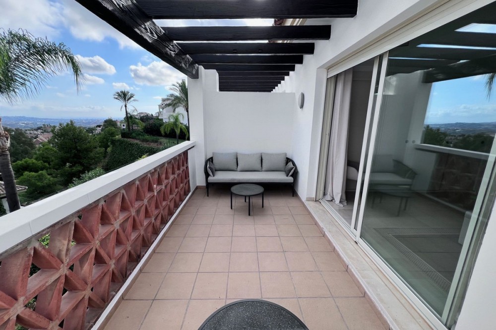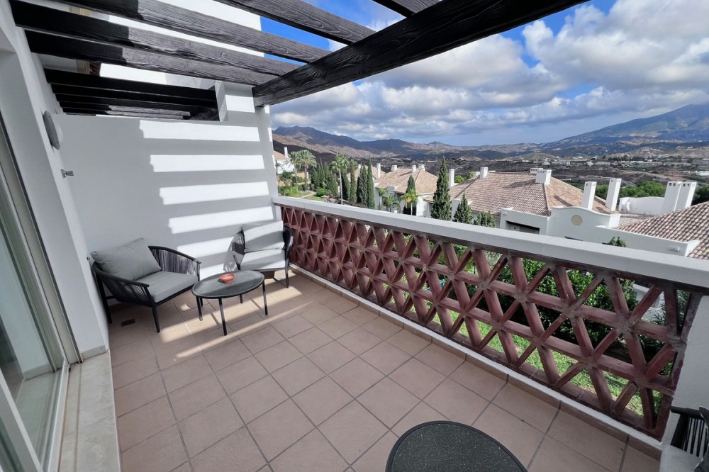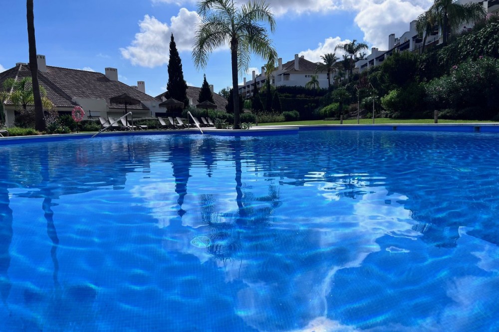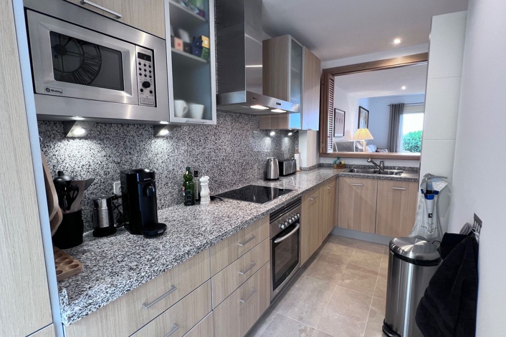 - We are delighted to be able to offer for sale this immaculate 2-bedroom 2.5-bathroom townhouse located in the ever popular “Monte Alto” La Cala Golf. With its immaculate mature gardens, 2 communual swimming pools & tropical walkways. This townhouse offers 2 large double bedrooms, both with ensuite bathrooms & terraces, the master bedroom has fabulous mountain views & sea in the distance. Ample fitted wardrobes to both bedrooms with additional wardrobe storage on the landing. On the ground floor we have a fully fitted kitchen including an integrated fridge freezer, washing machine & a dishwasher, guest WC, good size dining area leading to the lounge area featuring a functioning fan assisted log burner for winter use, this then leads out on the terrace & garden area. The house offers direct internal access down to a private garage large enough to take 2 standard sized cars plus additional storage. The garage has its own private electric vented door. Further features include cream polished marble floors throughout, recently renewed ducted air conditioning system, hot & cold, Electric window shutters throughout, Double glazing, fibre optic internet. This house would make a perfect holiday or permanent home being just a short drive to La Cala De Mijas. La Cala Resort offers 3 championship golf courses, Hotel & Spa, Padel courts & various dining establishments. To be sold un-furnished.