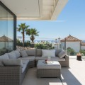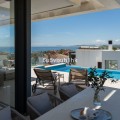 - Huge price drop! We present you to our new exclusive listing: a modern luxury villa located in the privilged area of Seghers in Estepona. This stunning property, built with top-quality materials, is the ideal retreat for those seeking a sophisticated coastal lifestyle. Enjoy panoramic views of the Mediterranean Sea, the African coastline, and Gibraltar from every corner of this spectacular villa. With five bedrooms and four full bathrooms, plus a guest toilet, the home offers generous and elegant living space. Two of the bedrooms are en-suite and include private dressing rooms, creating an oasis of comfort and privacy. All rooms open onto the terrace, filling the interiors with natural light and offering breathtaking views of the garden, sea, and mountains. The bedrooms are equipped with electric blinds and bathrooms with underfloor heating. The villa is distributed over two floors plus a solarium, connected in a functional and harmonious layout. It can be accessed from both the ground and first floors for greater convenience. The ground floor hosts four cozy bedrooms, three full bathrooms, a TV room, laundry room, and a practical storage area. One of the bedrooms is en-suite and features a spacious walk-in wardrobe. The first floor includes a spacious and bright living-dining area that flows into an open-plan kitchen designed by Decodan Studios and equipped with Miele appliances. This space is perfect for both daily life and entertaining guests, with access to the terrace and chill-out area. Outside, enjoy a heated infinity pool with a counter-current swimming system—ideal for exercise and relaxation under the sun. Also on this floor there is another en-suite bedroom with dressing area and additional guest toilet. The solarium, accessible via an external staircase, offers a private sanctuary with unmatched views—ideal for unwinding or watching unforgettable sunsets. Its layout allows for installing a jacuzzi or an outdoor kitchen, enhancing your outdoor living experience. The villa is surrounded by a low-maintenance garden with an automatic irrigation system, creating a peaceful, green environment. From the garden to the pool and rooftop terrace, every corner invites you to enjoy outdoor living. Additional features include private parking with an automatic gate and extra storage rooms for bicycles and equipments. Located in a quiet, secure residential area, the villa is just five minutes’ walk from the beach and the promenade. Estepona's marina and the old town is also within walking distance. With nearby schools, restaurants, supermarkets, gym, padel-, tenis- and golfcourses, the area is ideal for permanent or holiday living. Don’t miss this opportunity—schedule your visit today and let this unique Mediterranean gem become your new home.