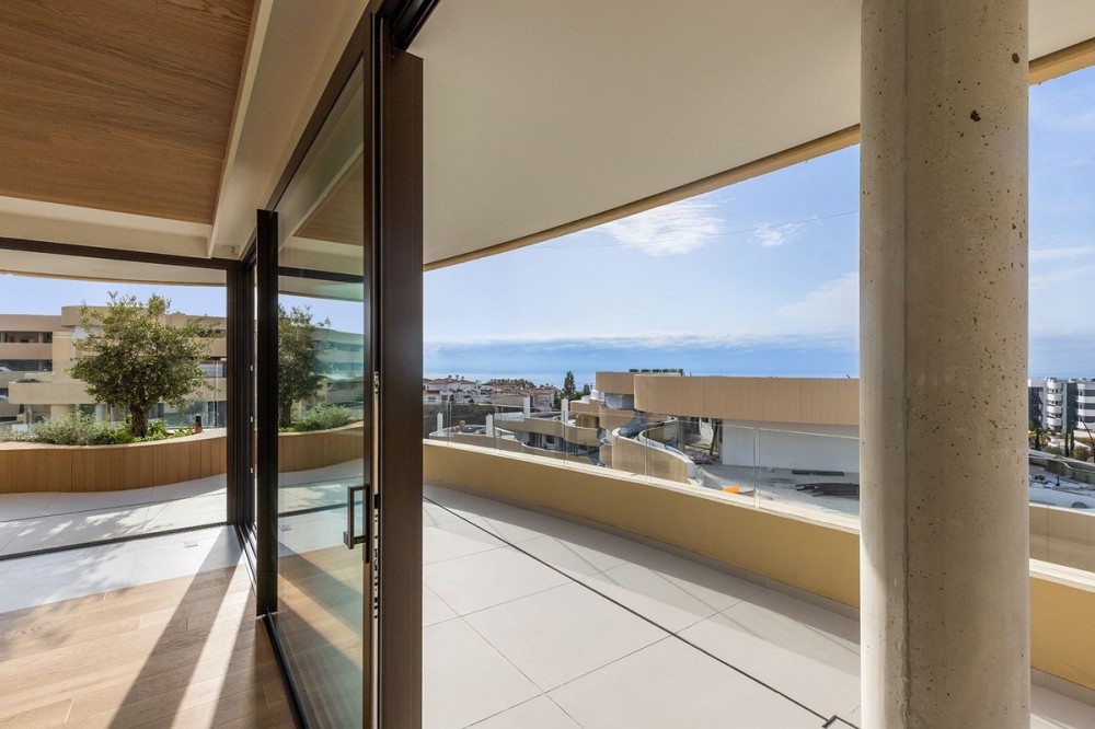 - Discover a unique 3-bedroom middle floor at the corner of the building, where no one lives above you—offering privacy, light, and a peaceful ambiance rarely matched. The living room flows directly into the main bedroom through a sliding glass wall, allowing you to open up the space fully when you choose or close it for intimacy. With an extended living area that stretches to a side terrace framed in full-height glass, you’ll enjoy sweeping Mediterranean views from multiple perspectives. Throughout, rich wooden floors are complemented by real wood accents along the walls and ceilings, adding warmth, texture and natural character to every room. Step outside and sink into your private jacuzzi under the stars in your own outdoor sanctuary. This home combines architectural elegance with resort-level living, all wrapped in a layout that feels expansive, airy, and absolutely exceptional.