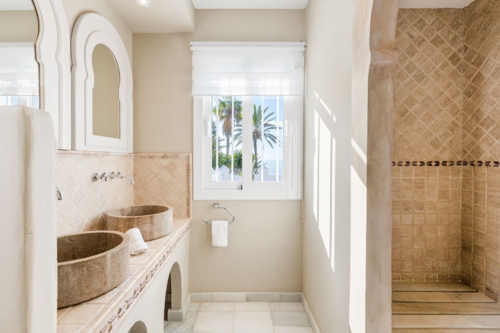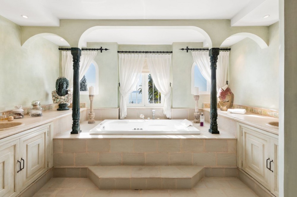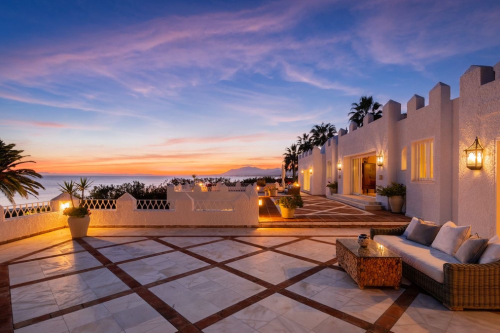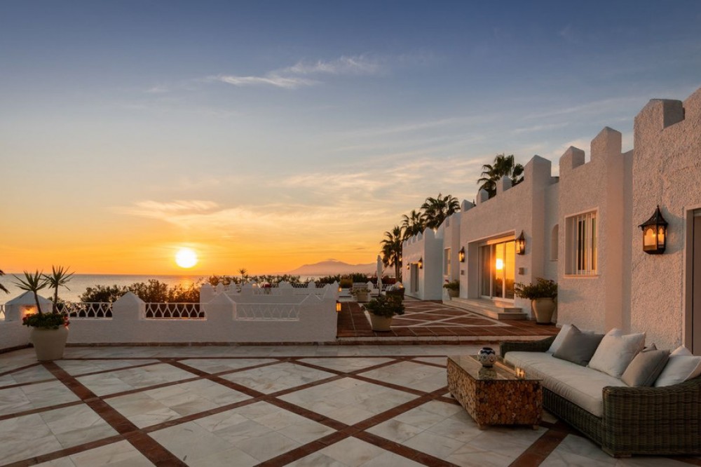 - With its spectacular setting, beautiful mature grounds, luxurious villa and of course unique pedigree, this is truly a unique property in Marbella. There are many impressive villas occupying prime frontline beach locations along the Marbella shoreline, but along the sandy beaches of Los Monteros – the finest address on the east side of town – there is a superb property whose beachfront setting and sea views simply will never be equalled. What’s more, it’s a mansion whose very pedigree is part of the glamorous story of Marbella itself. The former home of American socialite Aline Griffit hand her husband, Luis Figueroa y Pérez de Guzmán el Bueno, Count of Romanones., Villa Annabel was the backdrop to some of Marbella's glitziest parties. She had a circle of high-powered friends that included Jackie Kennedy, Audrey Hepburn and Wallis Simpson, many of whom she hosted at this beach-front house. Marbella is full of exotic-looking villas, but few boast the glitz, mystery and intrigue are woven into the fabric of Villa Annabel, one of the area’s most extraordinary properties. This opulent villa stands in grounds of a little more than an acre Los Monteros, one of Marbella’s most exclusive addresses. Grand and sophisticated, Villa Annabel is ideal for entertaining — especially because the interiors flow seamlessly into a vast terrace and the mature gardens beyond. Indeed, the house was the backdrop for some of Marbella’s most glamorous parties. The story of this splendid beachside villa leaps off the pages of a novel, for it was originally built for the daughter of a Spanish head of state, who settled here in favour of Madrid in the 1950s, attracted by the benevolent climate and lifestyle of Marbella. Already a burgeoning centre of refinement loved by an international set, the town provided her with the company of many of Europe, and indeed the world’s, most elegant and fascinating personages, from royals and business tycoons to top celebrities. The villa, built in privileged private proximity to the beach – a feat that can no longer be copied – stands alone in offering the most stunning views and personal experience of beach, sea, skies and privacy, surrounded as it is by extensive manicured grounds. Together, they envelop the property in a rich variety of floral and seaside tones, textures and fragrances, accompanied by the soundtrack of the sea. Not only is this a singularly beautiful spot, but it is also very private, bordered only by other large properties with extensive garden.