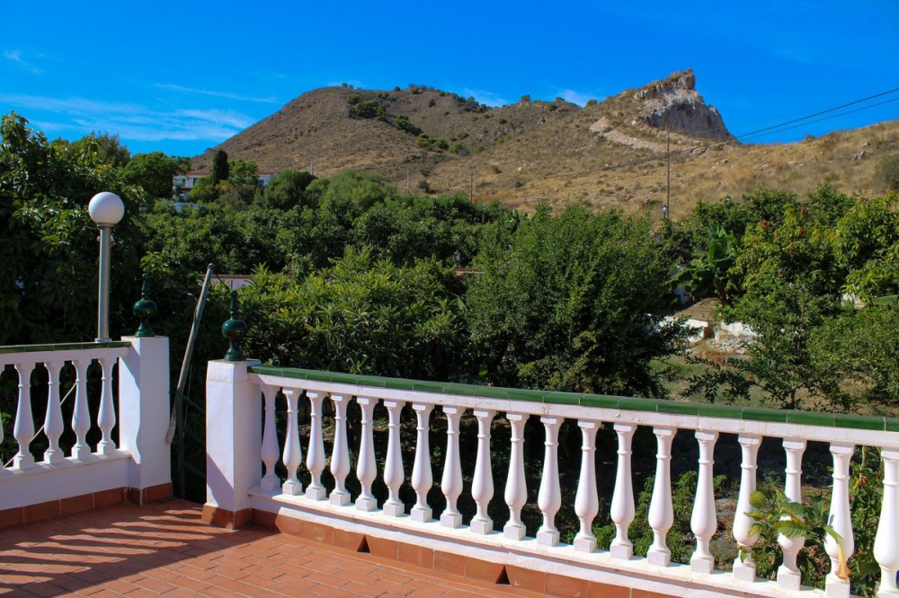- Villa with garden, private pool and three large terraces with sea views. Cozy finca in authentic Spanish style with its own garden and pool, privileged location between Nerja and Frigiliana. It takes less than 10 minutes by car to Burriana Beach and 15 minutes to Balcon de Europa. Do you dream of a quiet and peaceful Mediterranean life in the countryside, in harmony and connection with nature, with the sea and mountains nearby, your own private pool and also close to two of the most charming cities in Malaga, then this is the house for you. The house has four spacious bedrooms, a full bathroom plus a toilet, which also serves as a laundry room, a private pool, a roof terrace, a large covered terrace and an open terrace, garden with automatic irrigation and a tool room, plenty of water to supply the house, the pool and irrigate the garden. From the garden you can already harvest figs, bananas, pomegranates, papaya, guava, medlars, avocados, mangoes, lemons, oranges, tangerines, passion fruit and grapes from the vines. There is also plenty of space for your own vegetable garden. Malaga airport is a 50-minute drive away, but there is also a regular bus service from Nerja. The renowned Baviera golf course is only a 20-minute drive from your new home. In winter, Granada is only an hour and a half drive away, with skiing in the Sierra Nevada. Skiing in the morning and swimming in the afternoon, the best of both worlds. This house must be seen and experienced, book an appointment with us today.
