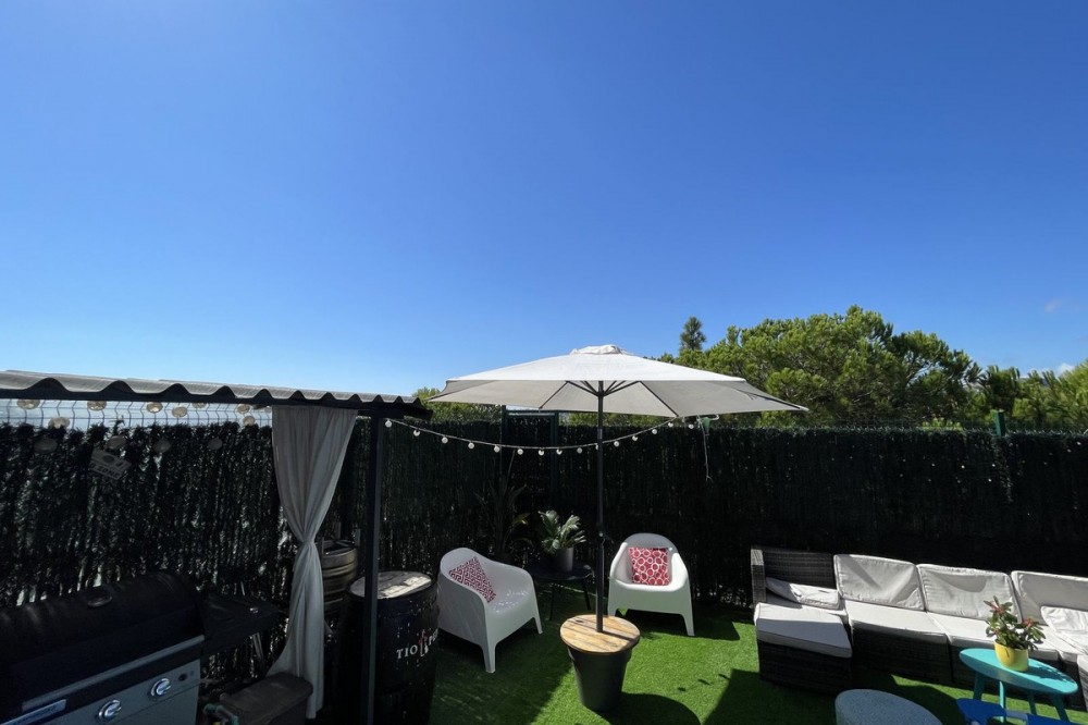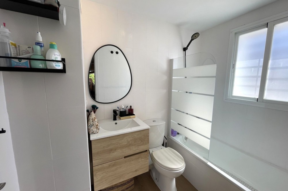 - Bright Home with Multifunctional Basement, Spacious Terraces and Sea Views Located in a peaceful and well-connected residential area, this property stands out for its generous spaces, versatility, and outdoor areas designed to be enjoyed all year round. Inspiring interior spaces The house offers four bedrooms adaptable to different needs. A highlight is the 20 m² fully conditioned basement, featuring its own guest toilet, built-in wardrobe, and independent electrical installation. This versatile space is ideal as a home office, leisure area, or playroom. Clever details, such as additional storage created under the staircase, add practicality to the layout. On the main floor you will find three bedrooms: The master suite with private, renovated bathroom, bathtub, new porcelain flooring and an exterior window with security grille, providing natural light and privacy. Two additional bedrooms, comfortable and bright, overlooking the rear patio. A fully updated family bathroom with a modern walk-in shower and high-quality porcelain finishes. A kitchen designed for everyday living The kitchen has been modernized and optimized, with a smarter distribution and more free space thanks to relocating the water heater to the separate laundry room. The laundry area includes a storage room, overhead shelving, space for washing machine and dryer, along with a utility sink — a practical and organized extension of the home. Outdoor spaces to enjoy year-round Rear patio with access directly from the kitchen and laundry room. Fully renovated front patio of more than 30 m², finished with concrete flooring and low-maintenance artificial grass. A pergola with integrated gas barbecue makes it the ideal setting for gatherings with friends and family. A spacious, sunlit front terrace equipped with perimeter awnings, ensuring comfort in both summer and winter. From here, you can enjoy open views and the sea on the horizon, bathing the home in natural light. Details that make the difference Private parking space larger than those of the rest of the community. Bathrooms, kitchen, and exterior areas renovated with a modern and functional style. Privileged position within the development, providing more natural light, privacy, and ventilation throughout the house. A home designed for every moment More than just a property, this is a space to live in, to work in, and to enjoy. A home that combines privacy, comfort, and versatility — always with the sea as your backdrop.