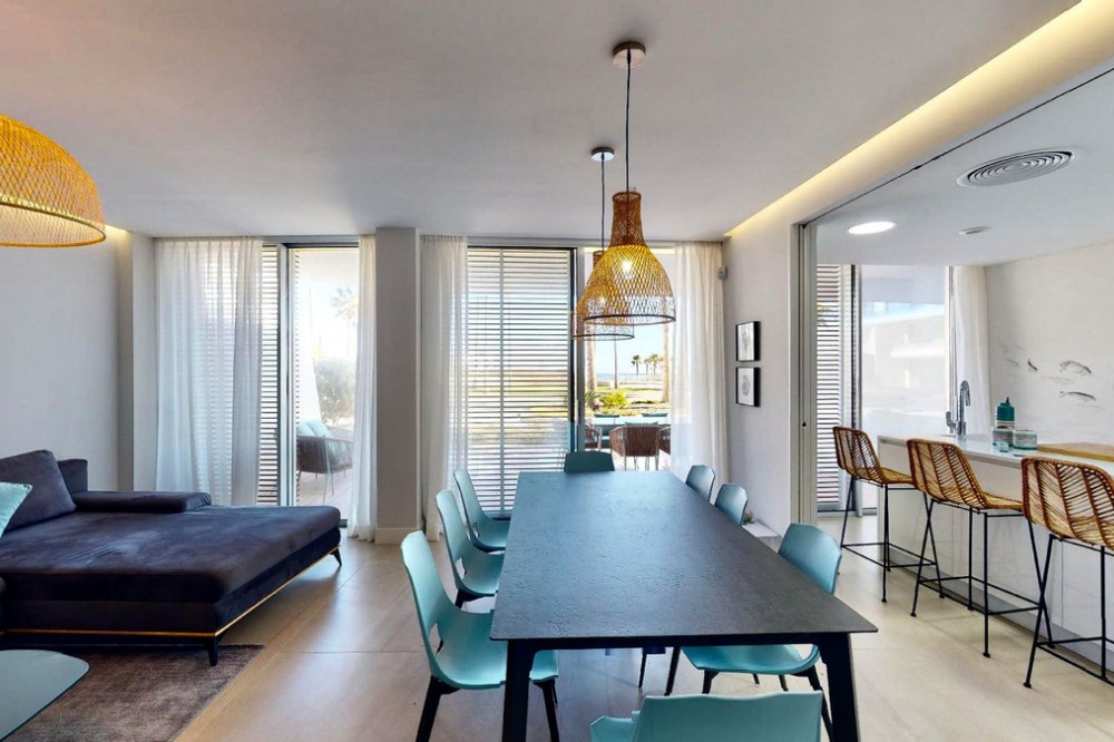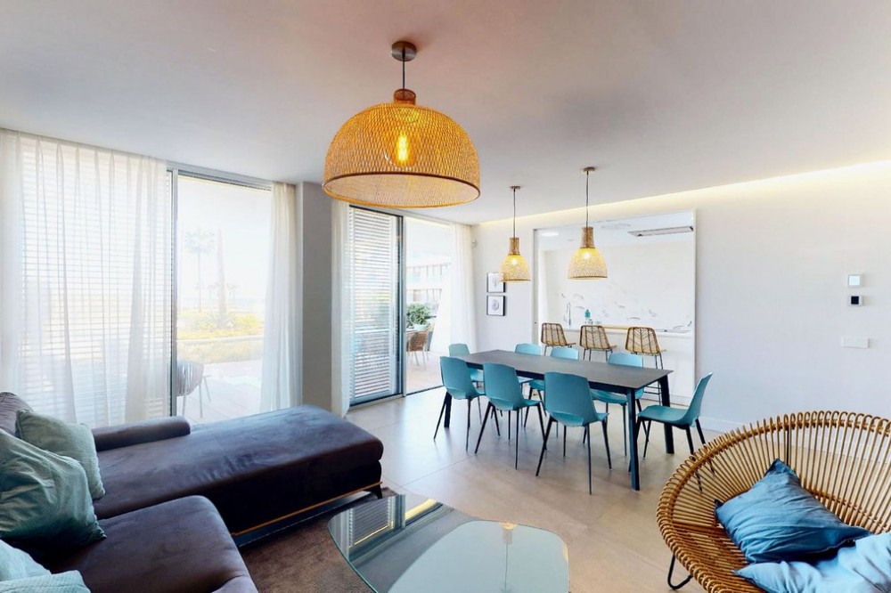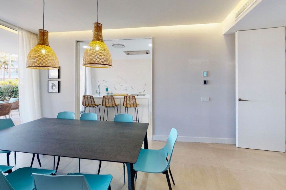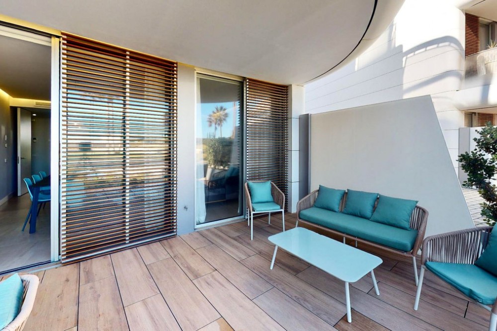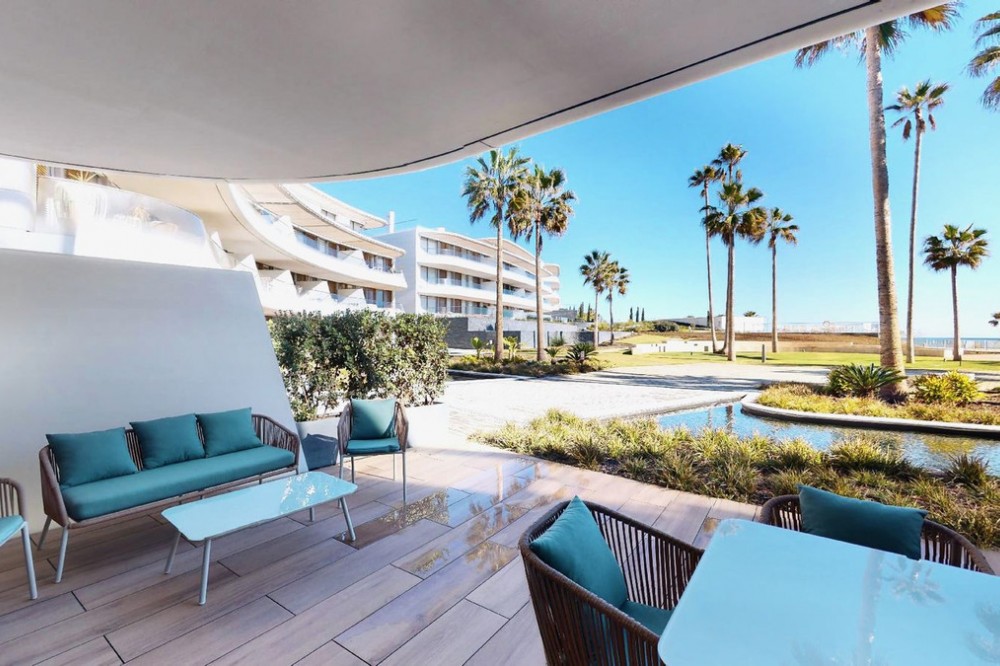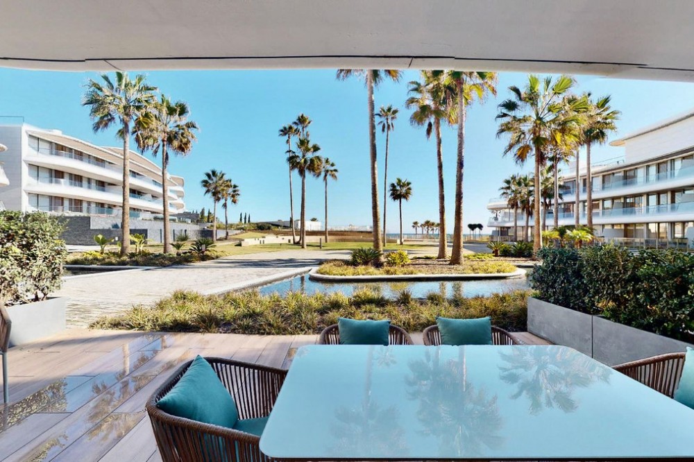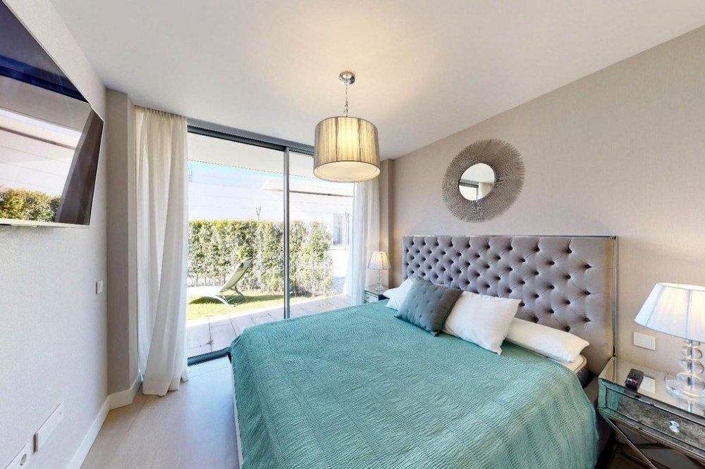 - This charming ground floor flat is located in an exclusive development in the beautiful coastal town of Estepona, known for its Andalusian charm, golden sandy beaches and relaxed atmosphere. This home features two bedrooms and two bathrooms, a spacious living room and a generous terrace. The bedrooms open onto a beautiful private garden. The integration of indoor and outdoor spaces allows you to enjoy the Mediterranean climate and views over the lush gardens of the urbanisation. Equipped with the latest amenities, the flat features state-of-the-art home automation systems and aerothermal technology to ensure energy efficiency and comfort. The kitchen is equipped with Gaggenau appliances, offering a high quality culinary experience. The materials used throughout the property are first class, which is reflected in every corner. Furthermore, this flat comes with two parking spaces and a storage room to provide additional storage space and convenience. The development offers a wide range of luxurious amenities such as a spa for total relaxation, a first class gym to keep you active, an indoor swimming pool for your all-season enjoyment and a communal pool for socialising with other residents. The coworking area is perfect for those looking for a quiet and productive workspace. Security is a priority, with a 24-hour security team available, providing peace of mind for residents and their belongings. In addition, direct access to the beach from the development allows you to enjoy the Mediterranean Sea in a matter of seconds, providing the seaside living experience you have always dreamed of. This ground floor flat in Estepona is the perfect combination of luxury, comfort and an exceptional location in a coastal town with a unique and charming atmosphere. Don't miss the opportunity to live life by the sea at its best in this privileged enclave on the Costa del Sol.