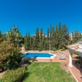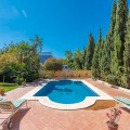 - VILLA IN CENTRE OF MARBELLA - 8 BEDROOMS Description Beautiful villa in the Xarblanca area, close to all amenities and a 5-minute drive from the center of Marbella. It comprises a 1,100 m² plot with a very large garden surrounded by plants and palm trees throughout the house, and a large swimming pool. The house itself is 412 m² and is distributed as follows: On the first floor, a spacious living-dining room with a fireplace and access to the garden, a porch that also connects to the kitchen and two patios. A total of eight bedrooms, each with built-in wardrobes and a terrace. One of the bedrooms has an en-suite bathroom, and two terraces, one facing south and the other facing north. On the top floor, there is a loft with a bedroom and a toilet, and a terrace with excellent views. There is a garage for two cars and a small cellar.
