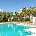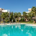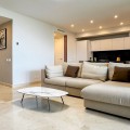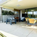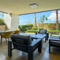 - Ground Floor · La Montesa de Marbella (Cabopino) A bright and elegant garden apartment in La Montesa de Marbella, where modern architecture meets the laid-back lifestyle of Cabopino. The open-plan living and dining room opens completely through floor-to-ceiling glass doors, creating a seamless connection with the spacious terrace, covered porch and private garden. The design gives you the feeling of living in a villa while enjoying all the convenience of a luxury apartment. Inside, both bathrooms are finished to a high standard with underfloor heating, while the kitchen comes fully fitted with top-quality appliances. The apartment is full of thoughtful details: electric blinds, premium wood and stone finishes, and carefully chosen wall materials that enhance both comfort and acoustics. A separate utility room adds extra practicality. Features • 2 bedrooms · 2 bathrooms • Private garden, terrace and covered porch • Floor-to-ceiling sliding windows opening fully to the outdoor space • High-end kitchen appliances and luxury finishes • Underfloor heating in both bathrooms • Utility/laundry room · Electric blinds • Underground parking space and private storage room • Secure gated community with 24-hour security, alarm system and CCTV • Beautiful landscaped gardens and a large communal pool • Excellent location within walking distance of Cabopino marina, beaches and golf