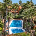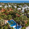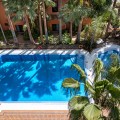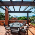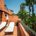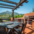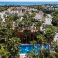 - Townhouse Oasis is a five-bedroom luxury home in one of Marbella’s most prestigious gated communities on the Golden Mile. Surrounded by tropical gardens, this townhouse offers privacy, comfort, and Mediterranean charm. With multiple terraces, a private garden, and a rooftop solarium, it combines outdoor living with elegant interior spaces, making it ideal for families or buyers looking for a secure retreat close to the beach and amenities. Inside, the living area is bright and inviting with large windows, a fireplace, and direct access to the terraces. The kitchen is modern and practical with high-end appliances and access to the outdoor dining area. The master suite includes an en-suite bathroom with a bathtub overlooking the gardens, while additional bedrooms feature private terraces and mountain views. The lower level provides two en-suite bedrooms, a laundry room, and garage access, with the option to create a self-contained guest apartment. With panoramic views of La Concha and the Mediterranean Sea from the rooftop, Townhouse Oasis offers the perfect balance of luxury, functionality, and location in Marbella’s Golden Mile.