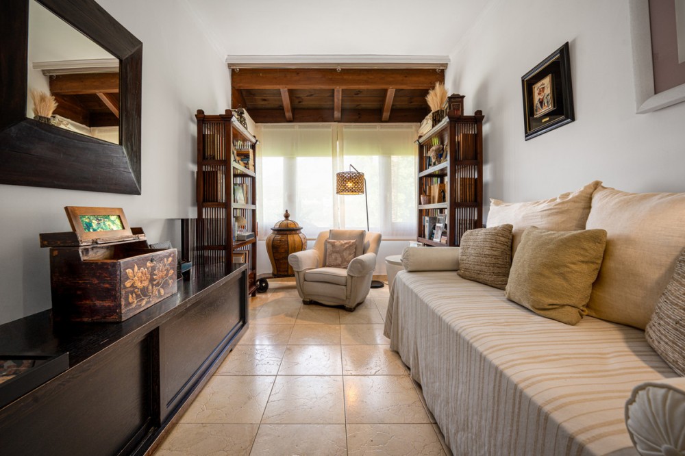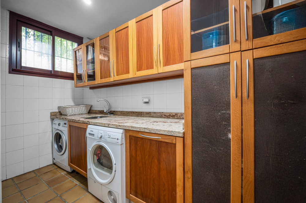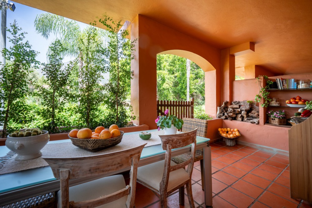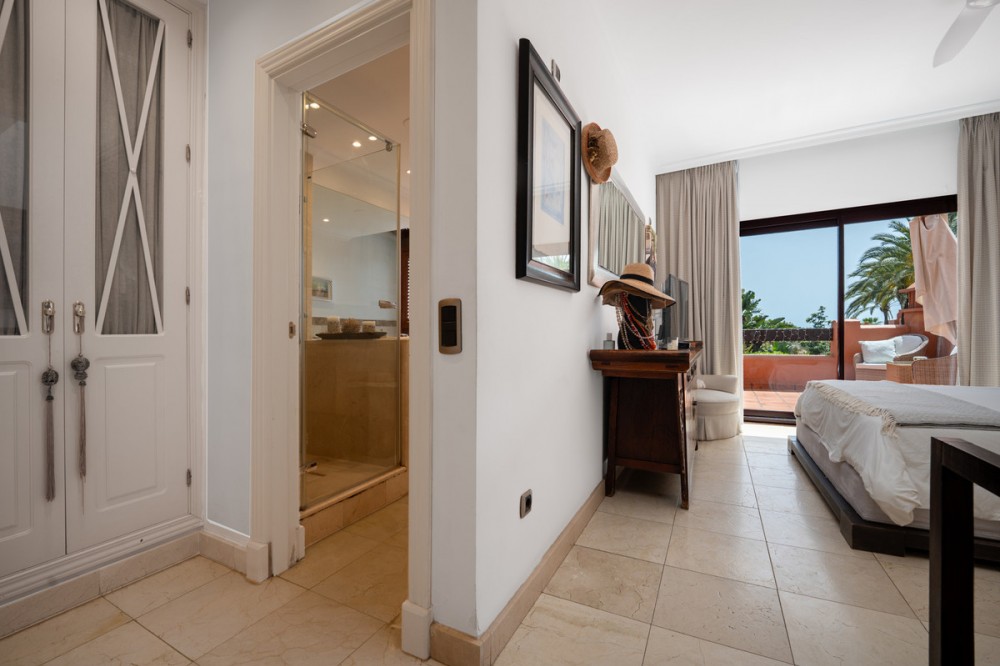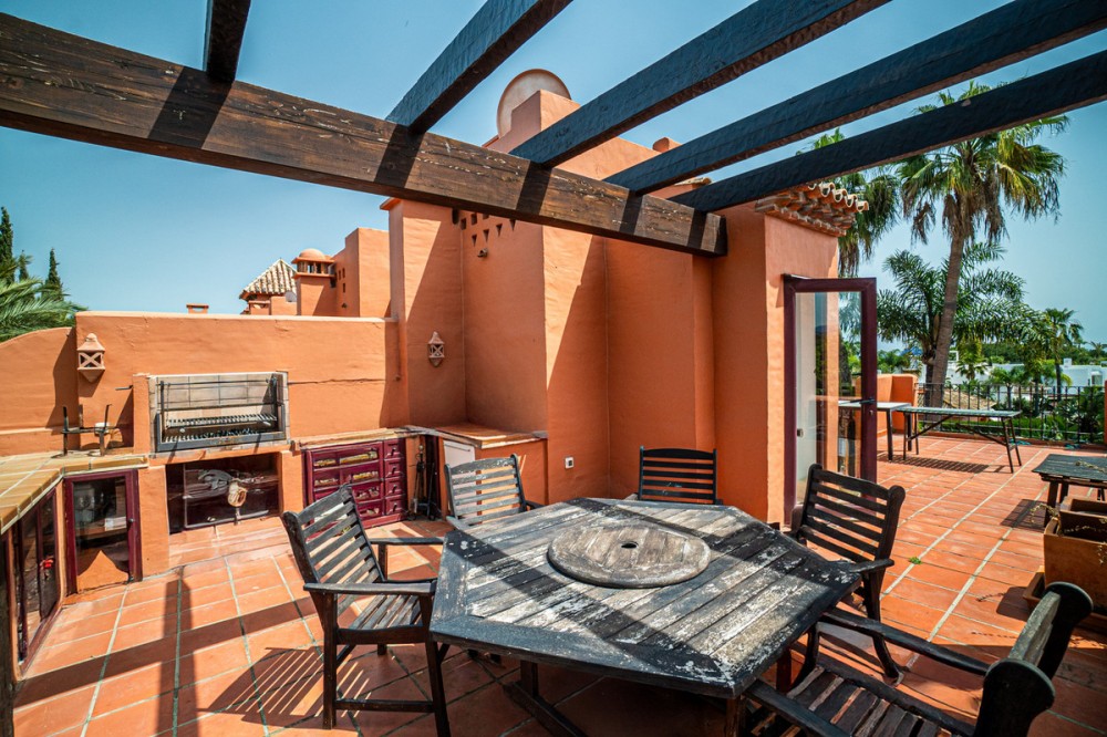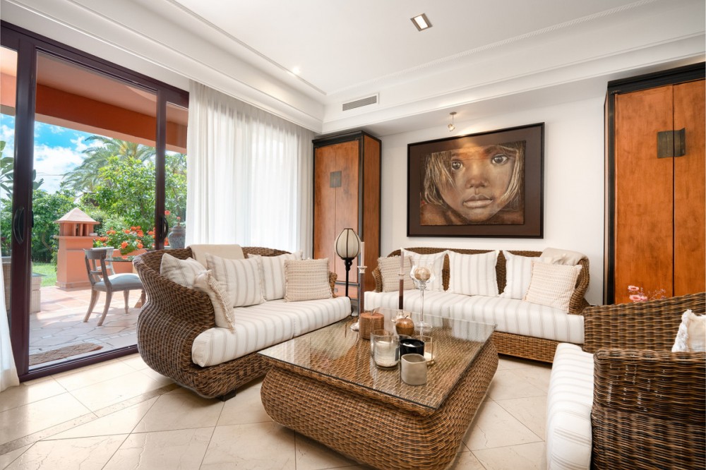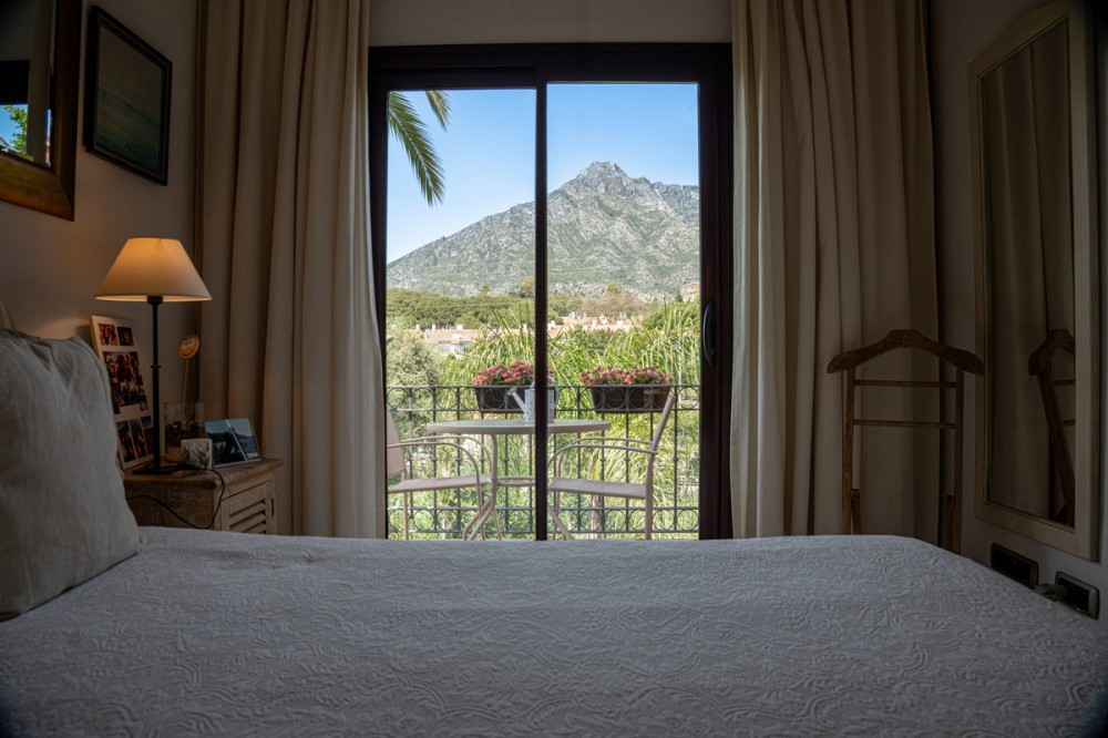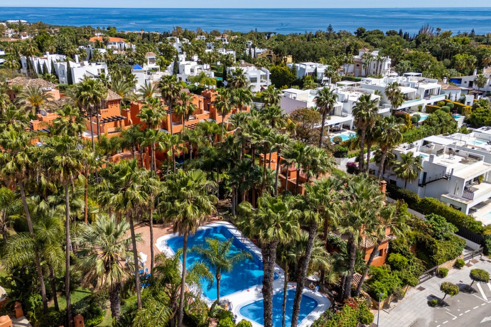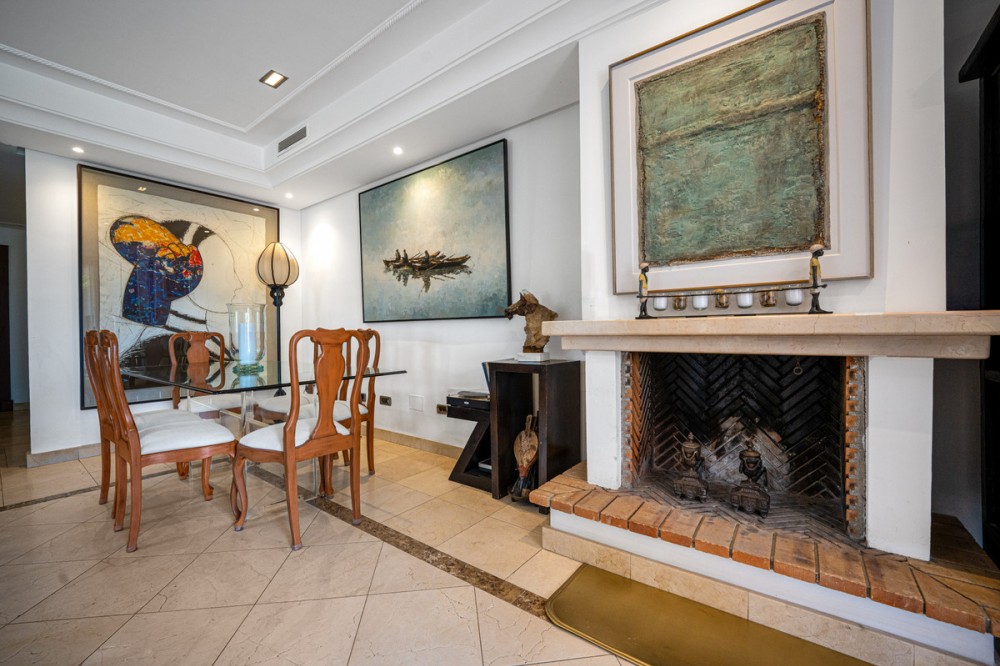- Townhouse Oasis is a five-bedroom luxury home in one of Marbella’s most prestigious gated communities on the Golden Mile. Surrounded by tropical gardens, this townhouse offers privacy, comfort, and Mediterranean charm. With multiple terraces, a private garden, and a rooftop solarium, it combines outdoor living with elegant interior spaces, making it ideal for families or buyers looking for a secure retreat close to the beach and amenities. Inside, the living area is bright and inviting with large windows, a fireplace, and direct access to the terraces. The kitchen is modern and practical with high-end appliances and access to the outdoor dining area. The master suite includes an en-suite bathroom with a bathtub overlooking the gardens, while additional bedrooms feature private terraces and mountain views. The lower level provides two en-suite bedrooms, a laundry room, and garage access, with the option to create a self-contained guest apartment. With panoramic views of La Concha and the Mediterranean Sea from the rooftop, Townhouse Oasis offers the perfect balance of luxury, functionality, and location in Marbella’s Golden Mile.
