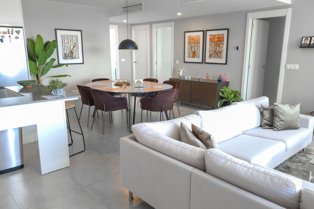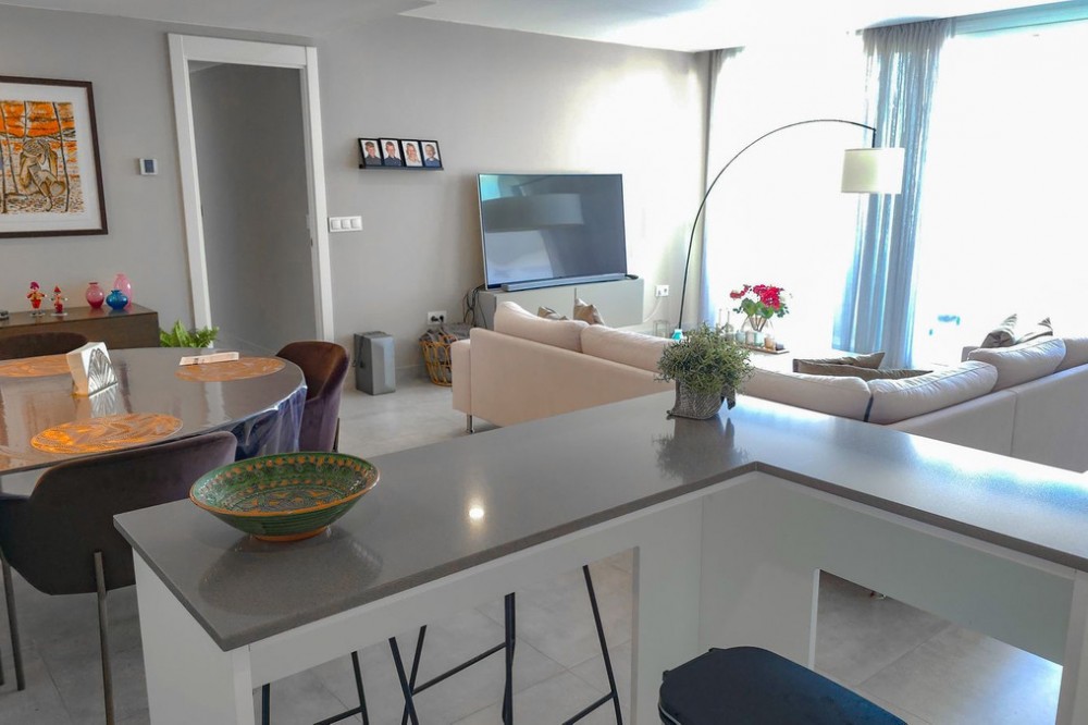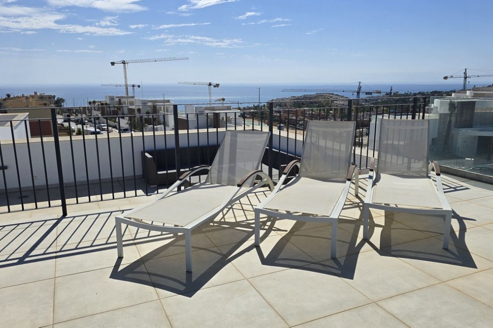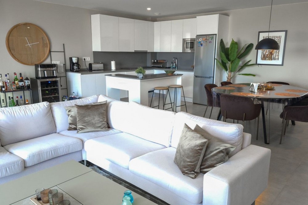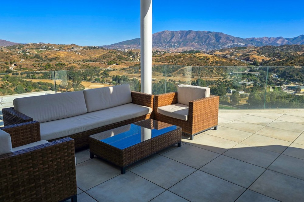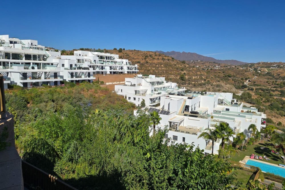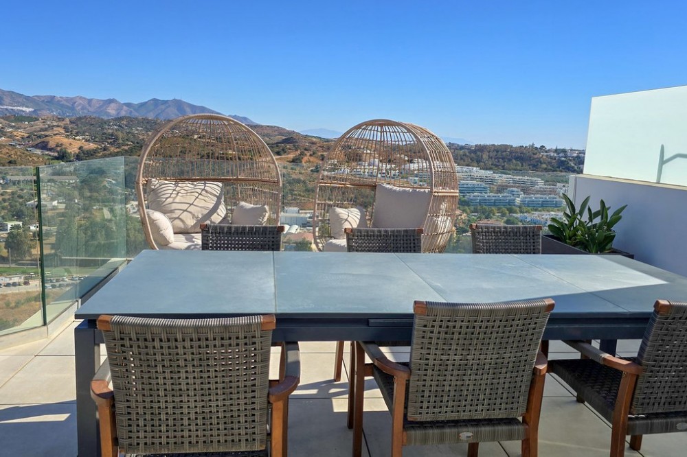 - This penthouse in La Cala de Mijas offers 4 bedrooms, 3 bathrooms, 124m² of interior space and nearly 200m² of terraces with a private pool, set within the Casa Banderas complex completed in 2019. Located in an elevated position above La Cala de Mijas, this penthouse offers sweeping views over the town, surrounding landscapes, and the Mediterranean. The interior layout is designed with open-plan living, generous windows that flood the rooms with natural light, and seamless access to the large terraces. The spacious kitchen and dining area connect effortlessly with the lounge, creating an ideal space for both everyday life and entertaining. The highlight of this home is the spectacular terrace of almost 100m², featuring a private pool, chill-out corners, and areas for outdoor dining, sunbathing, or evening gatherings. With four comfortable bedrooms, including a master suite with its own terrace access, this property ensures both privacy and convenience. Two underground parking spaces and a storage room are included in the price of €1,150,000. Casa Banderas is a highly regarded development, offering resort-style amenities such as landscaped gardens, multiple swimming pools, a fully equipped gym, spa, sauna, padel court, and social-gourmet spaces. Families will appreciate the children’s play areas, while wellness and sports lovers can enjoy yoga decks and relaxation zones. Security and concierge services complete the sense of exclusivity. La Cala de Mijas is renowned for its charming atmosphere, sandy beaches, and vibrant local scene with restaurants, shops, and golf courses within easy reach. The penthouse is just minutes from La Noria Golf and a short drive from Marbella, Málaga airport, and other Costa del Sol hotspots. This unique resale penthouse in Casa Banderas combines contemporary design, prime location, and exceptional amenities. A rare opportunity to own a property of this standard in La Cala de Mijas.