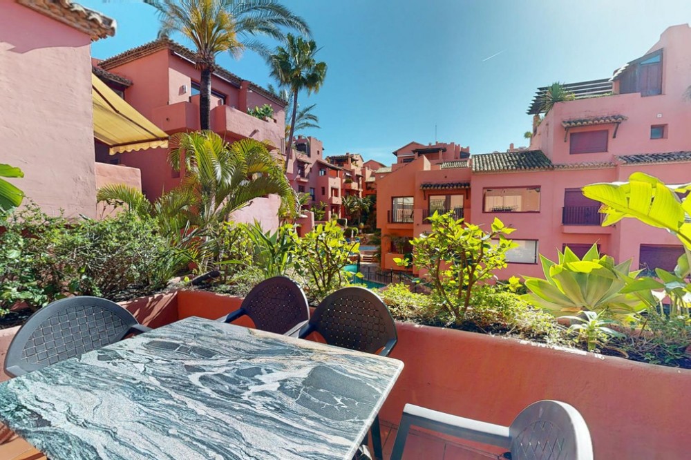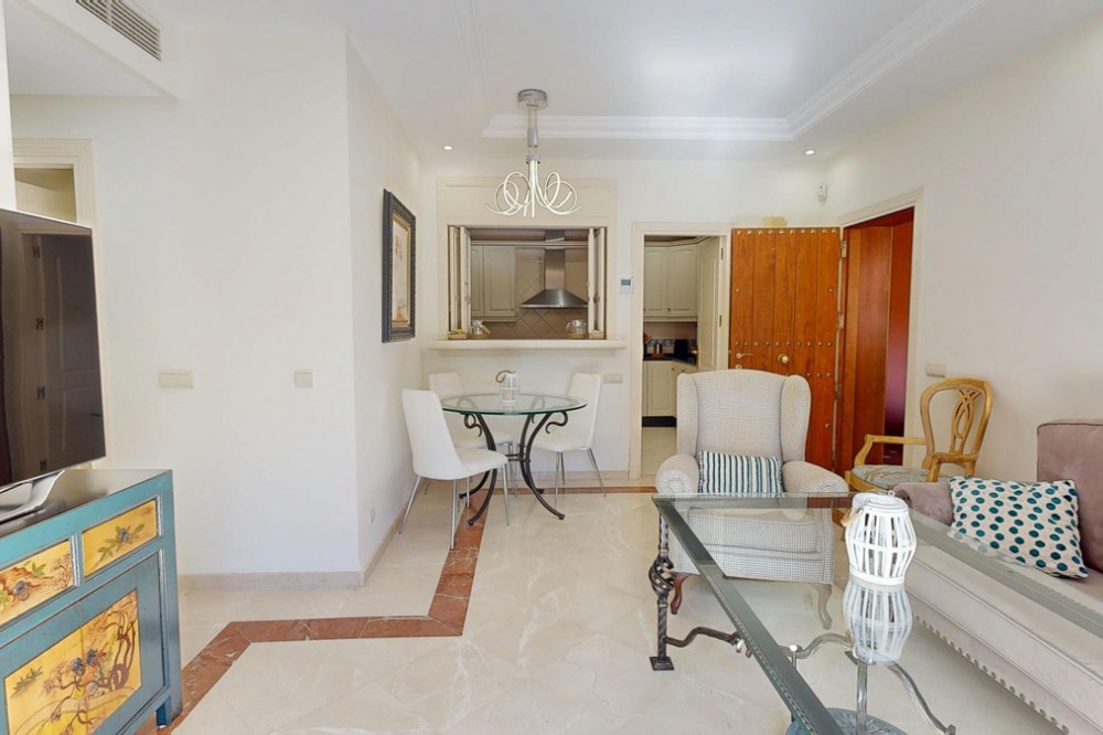 - This modern single storey property, located in the urbanisationJardines de Don Carlos, has three bedrooms and two bathrooms, and is ideal for those looking for comfort and an excellent location. It is located just a few metres from the beach in Elviria, which makes a perfect choice for enjoying the sea and the sun.Upon entering, we are greeted by a large glazed terrace with orientation East, from which we can appreciate the views to the gardens and to one of the communal swimming pools, an ideal space to enjoy all year round. This terrace connects with a bright living room that leads to a second terrace, where the sun shines all morning.The property has three spacious bedrooms with fitted wardrobes.The two bathrooms, one of them en-suite, have been recently refurbished to include shower trays. The kitchen is spacious and has top of the range appliances and a separate utility room. The property is equipped with air conditioning and central heating. The floors are marble and the windows have double Climalit glazing and automatic shutters.An ample storage room and a garage space with electric charger are included in, which is an added advantage for owners ofelectric vehicles. This urbanisation offers three swimming pools, gymnasium and sauna, making an ideal place to enjoy your leisure time.The location is unbeatable as it is close to all amenities, such as restaurants, supermarkets, pharmacies, and has easy access to the motorway. Marbella centre is only 10 minutes away by car.Do not hesitate to contact us at for more information or to arrange a viewing. This property is an opportunity you will not want to miss!The Abridged Information Document is at your disposal. Costs: Tax (ITP or IVA+AJD) + notary and registry fees.MPR